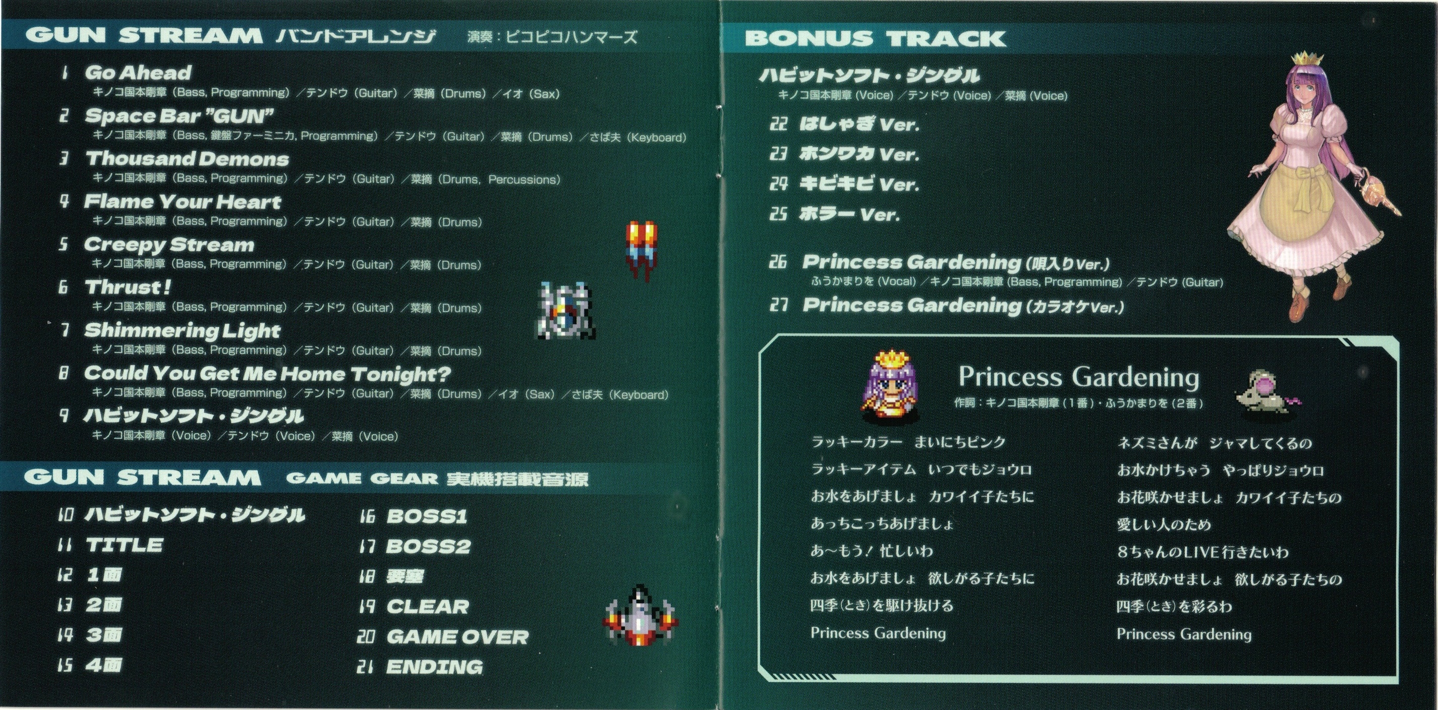 12 tracks of BGM from the new title "GUN STREAM" (Habit Software) for the Game Gear.