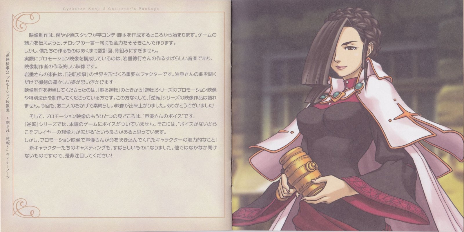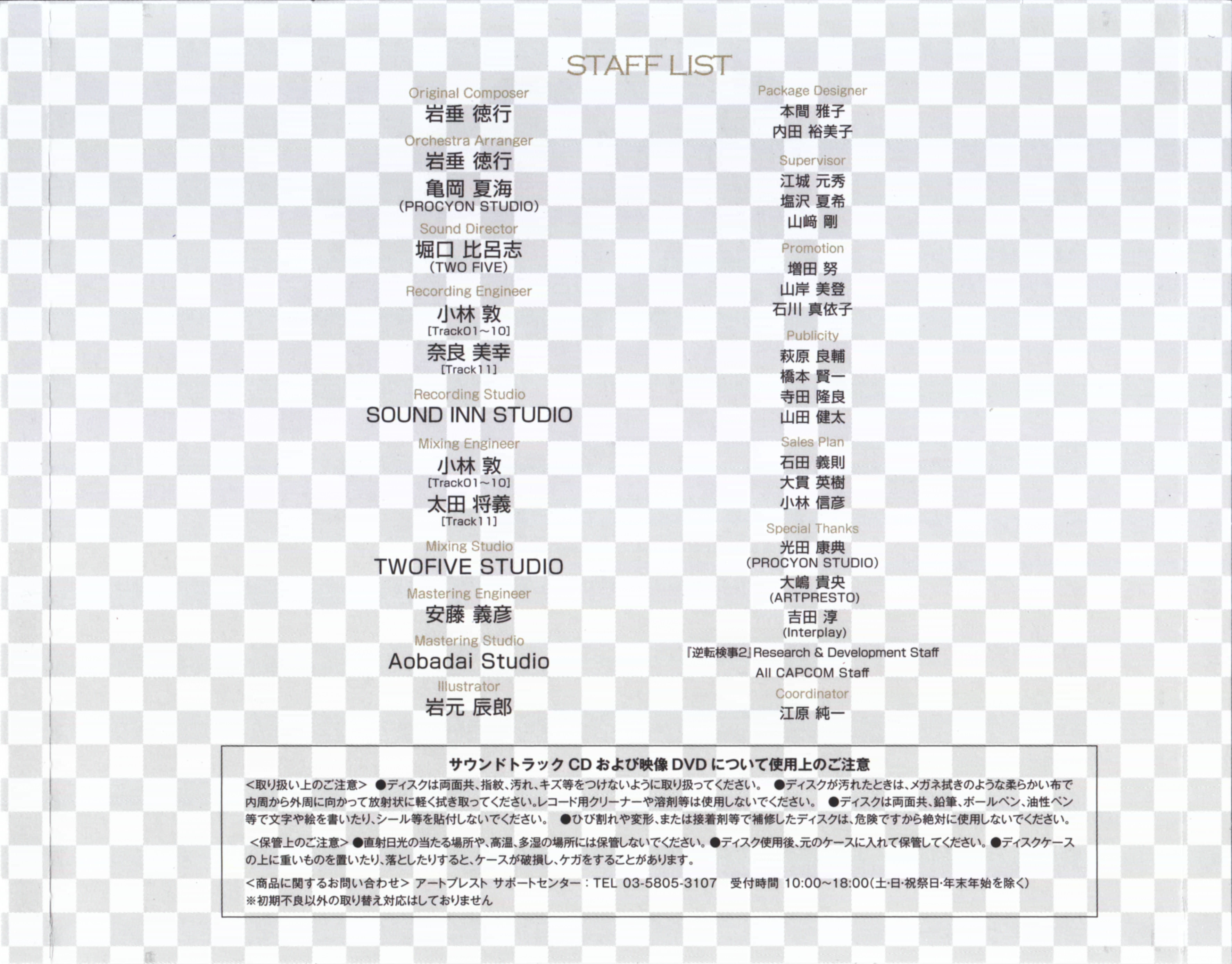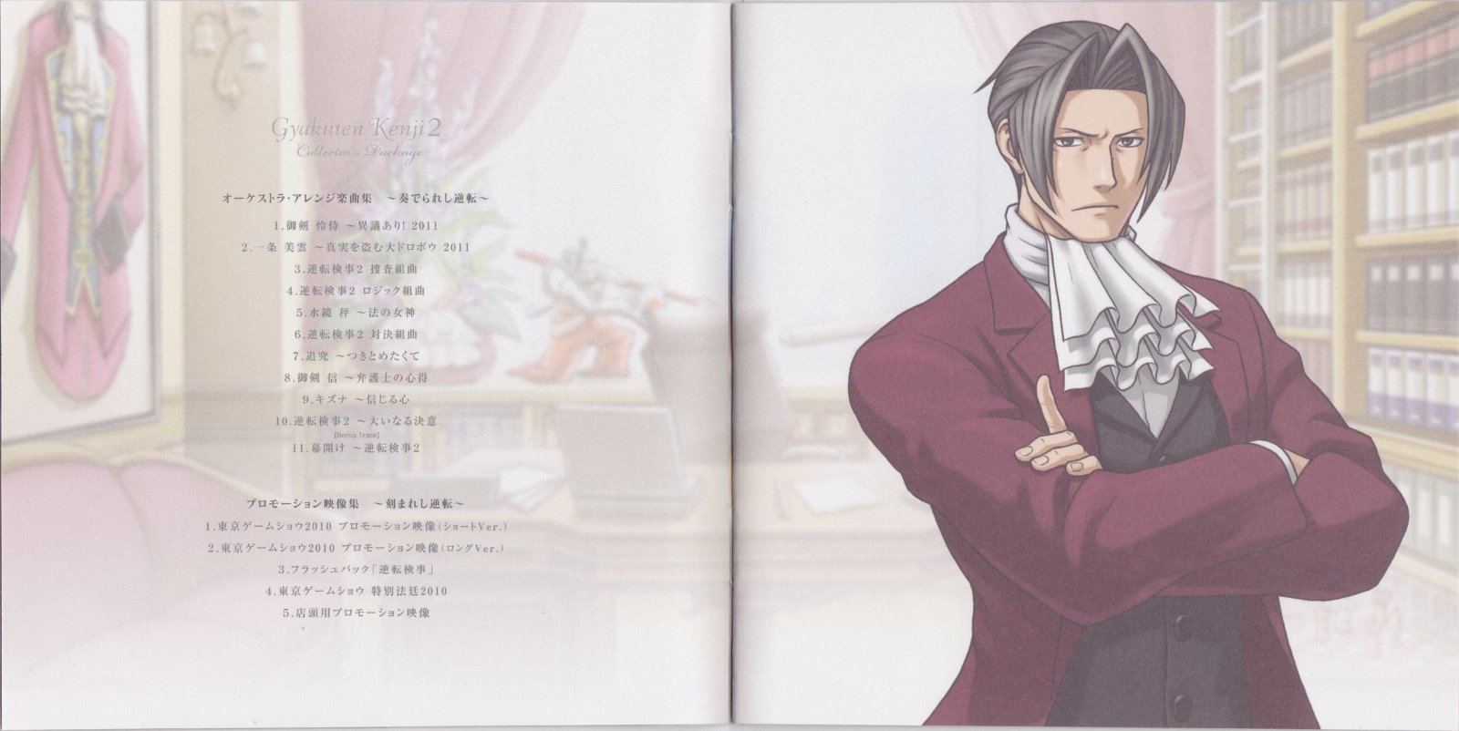 Enclosed in Gyakuten Kenji 2 Collector's Package (逆転検事2 コレクターズパッケージ). Track 11 is the piece featured in the "Gyakuten Kenji 2" Dengeki Winter 2010 trailer.