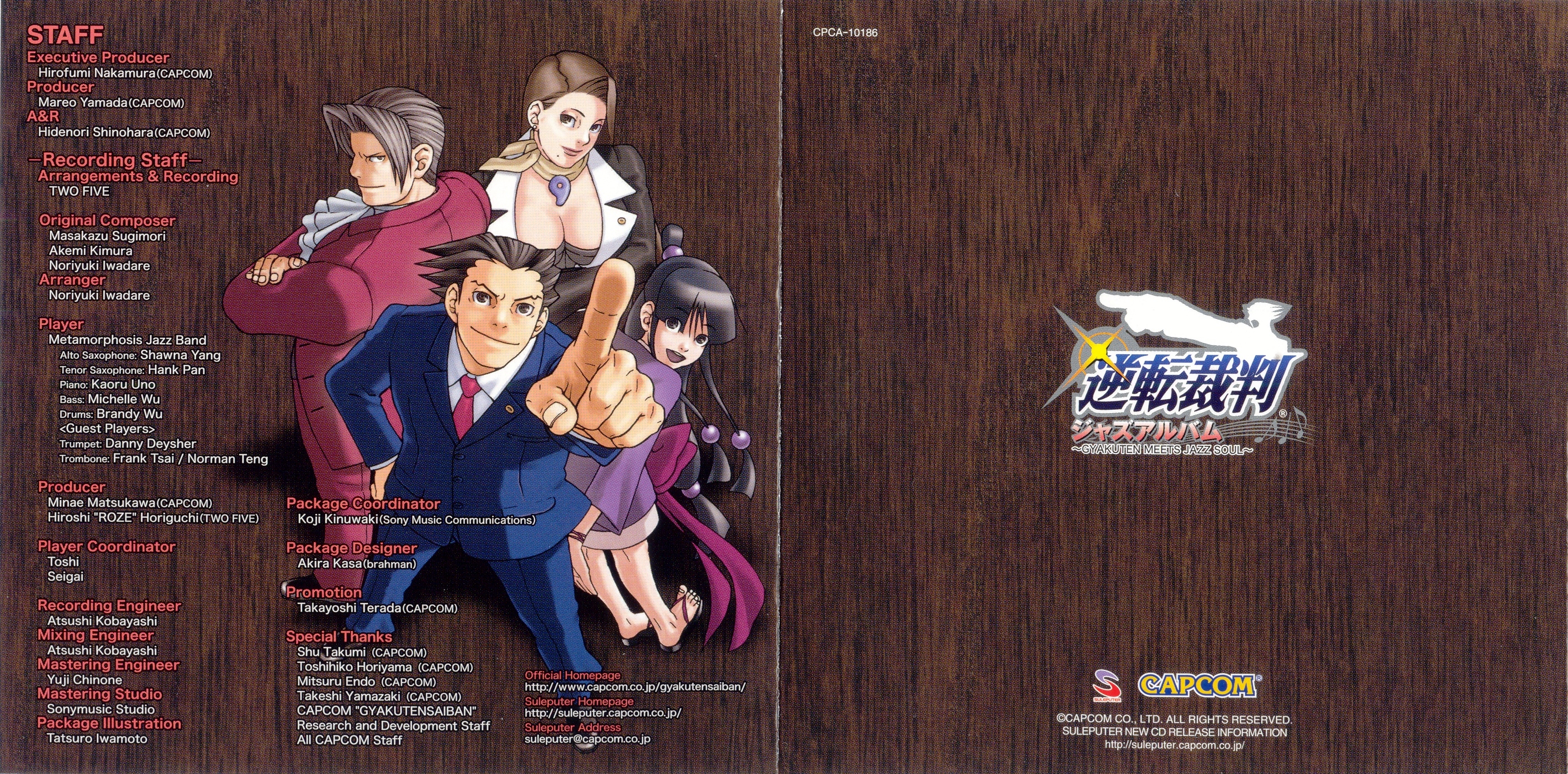 Special Thanks: Shu Takumi (Capcom), Toshihiko Horiyama (Capcom), Mitsuru Endo (Capcom), Takeshi Yamazaki (Capcom), Gyakuten Saiban Research & Development Staff, All Capcom Staff