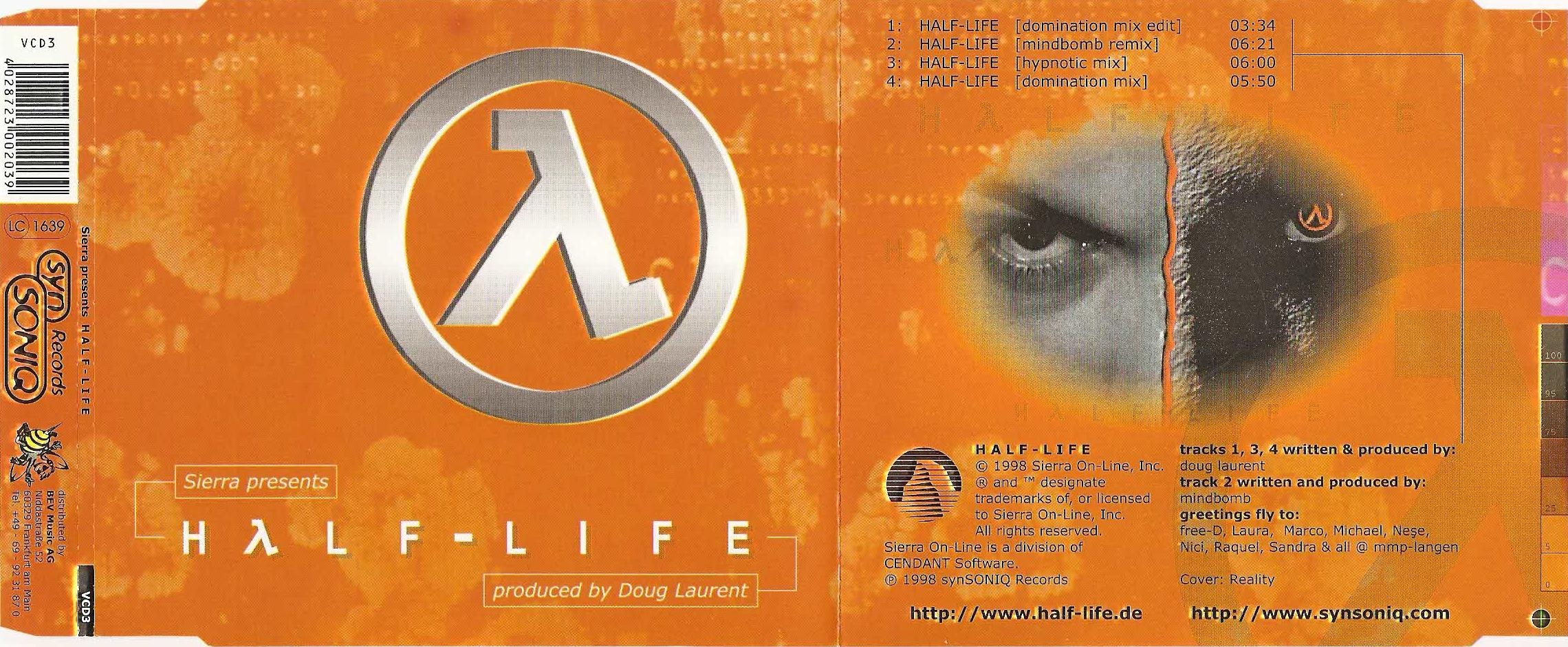 This single CD features soundtrack remixes from Sierra's 3D shooter Half-Life. The remixes were produced by Doug Laurent and mindbomb.