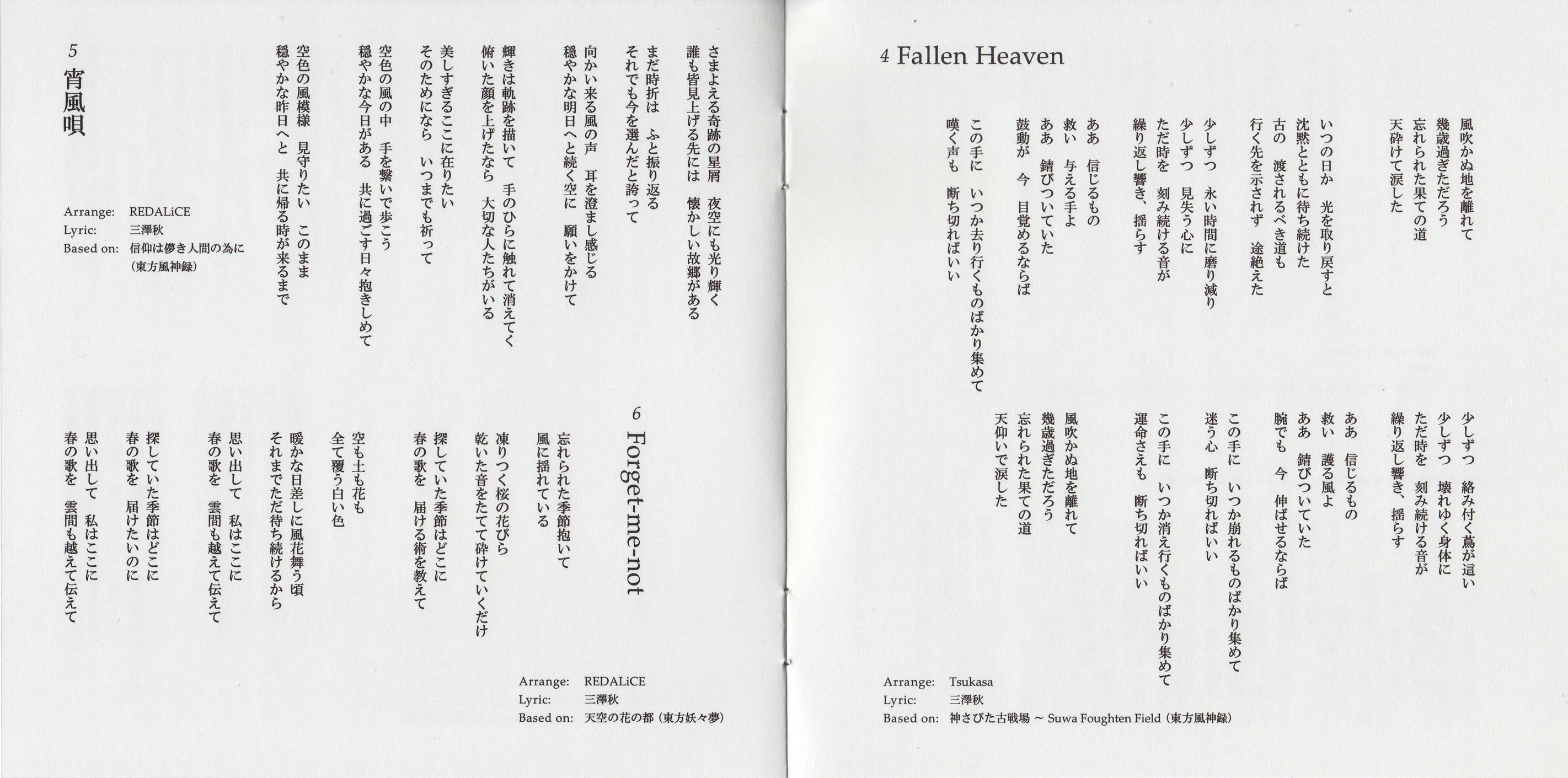 Lyrics by Aki Misawa, Lettuce Shichijou [IOSYS], Haruka [Alstroemeria Records]