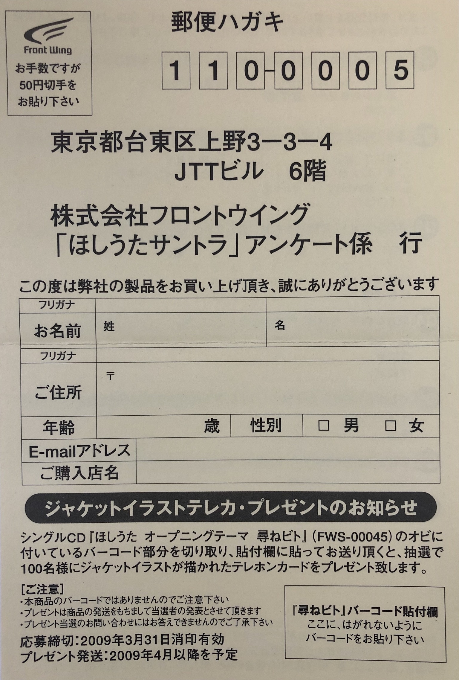 Can you post the hoshiuta Opening Theme 'Tazunebito' CD?