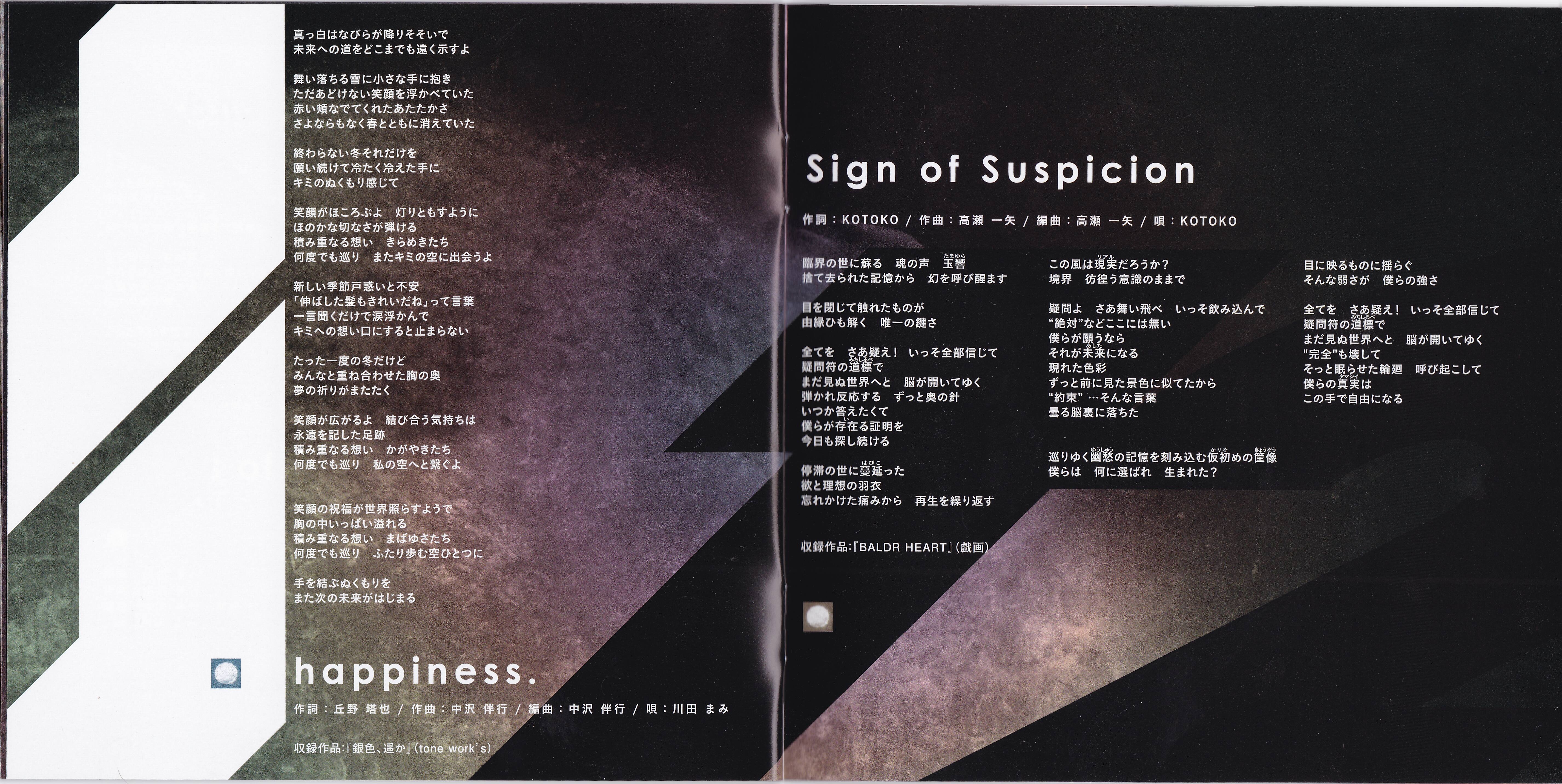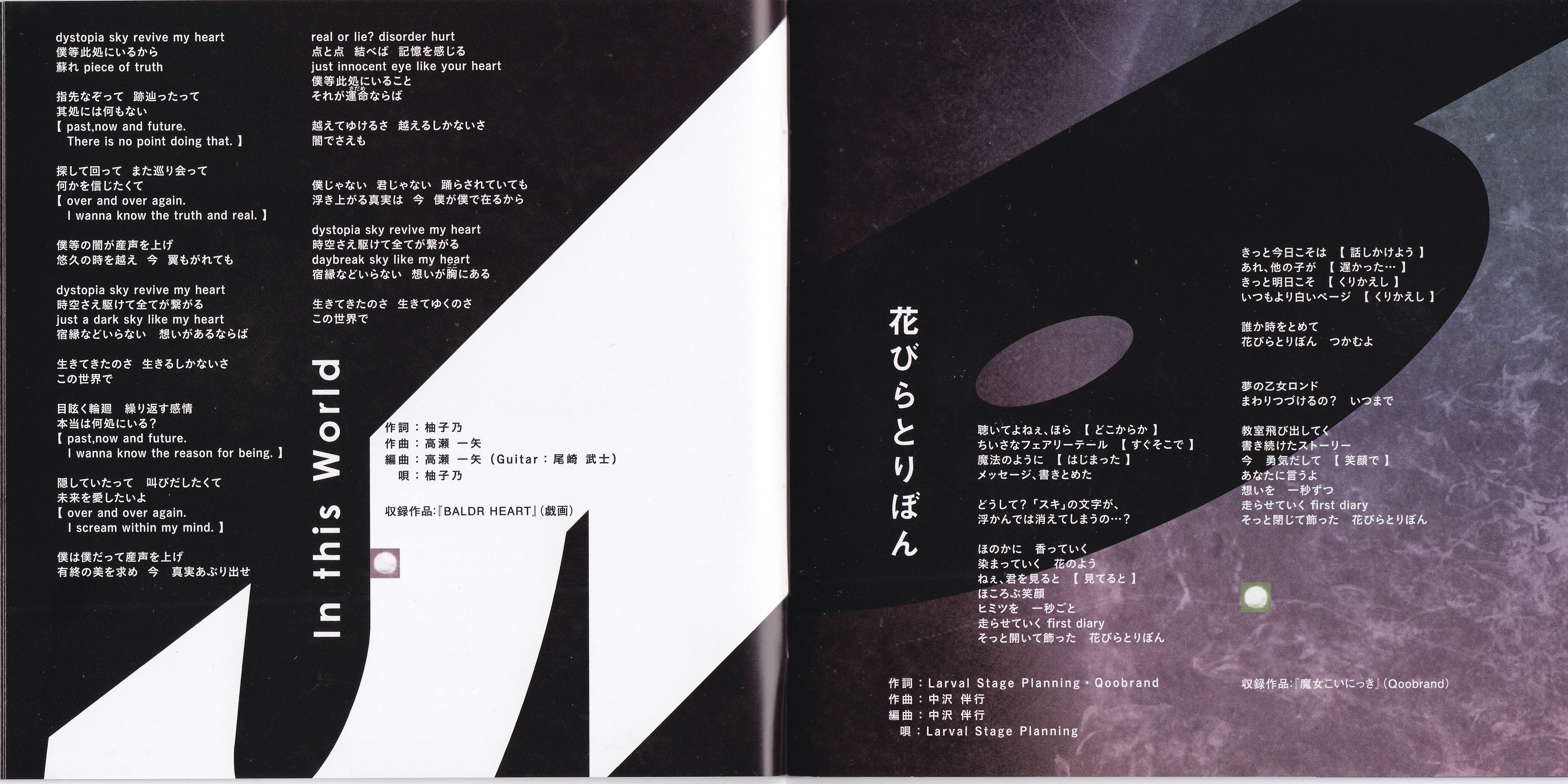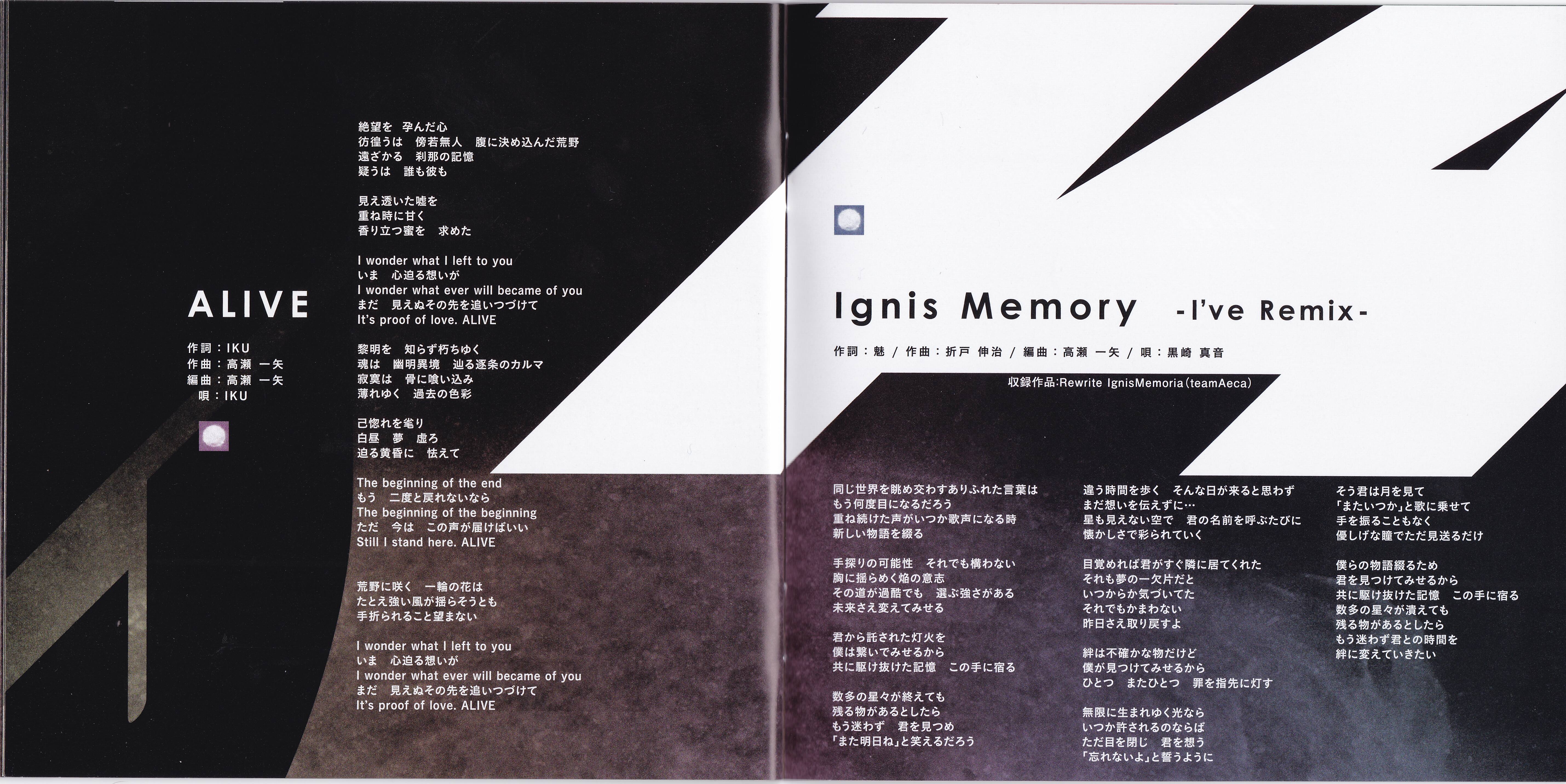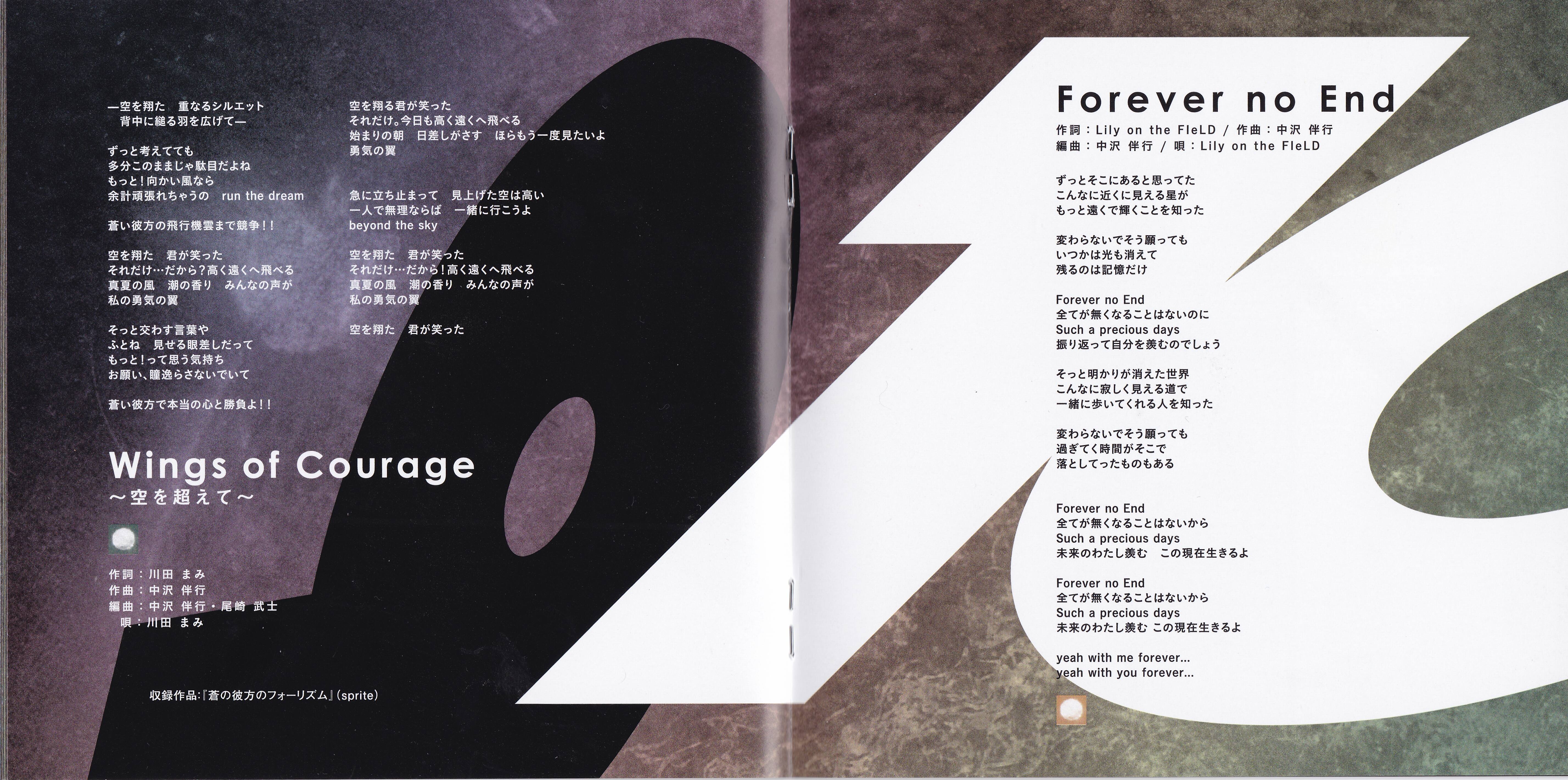 SPECIAL THANKS: Jun Nishimura (NBC Universal Entertainment Japan), Akira Ueda (NBC Universal Entertainment Japan), Shigeru Saito (Lantis), Yuki Takamura (Lantis), Yoshihiro Murakami (Weekend), Noboru Kaieda (Handclap), Rie Marutsugi (Handclap), Tamaki Sakashita (Handclap), Jyunya Tanaka (Rakutendo), Takashi Katagiri (Rakutendo), Tomomi Sugano (Rakutendo), Chikashi Sakuma (Pride), Ikumi Maruyama (Makeup Atelier), Ayumi Kida, NBC Universal Entertainment Japan, Lantis, Warner Bros Entertainment, Rakutendo, Wess, Weekend, Handclap, Pride, auras, I've Sound Explorer, I've DIVA and MY FAMILY and FRIENDS and ALL FANS!