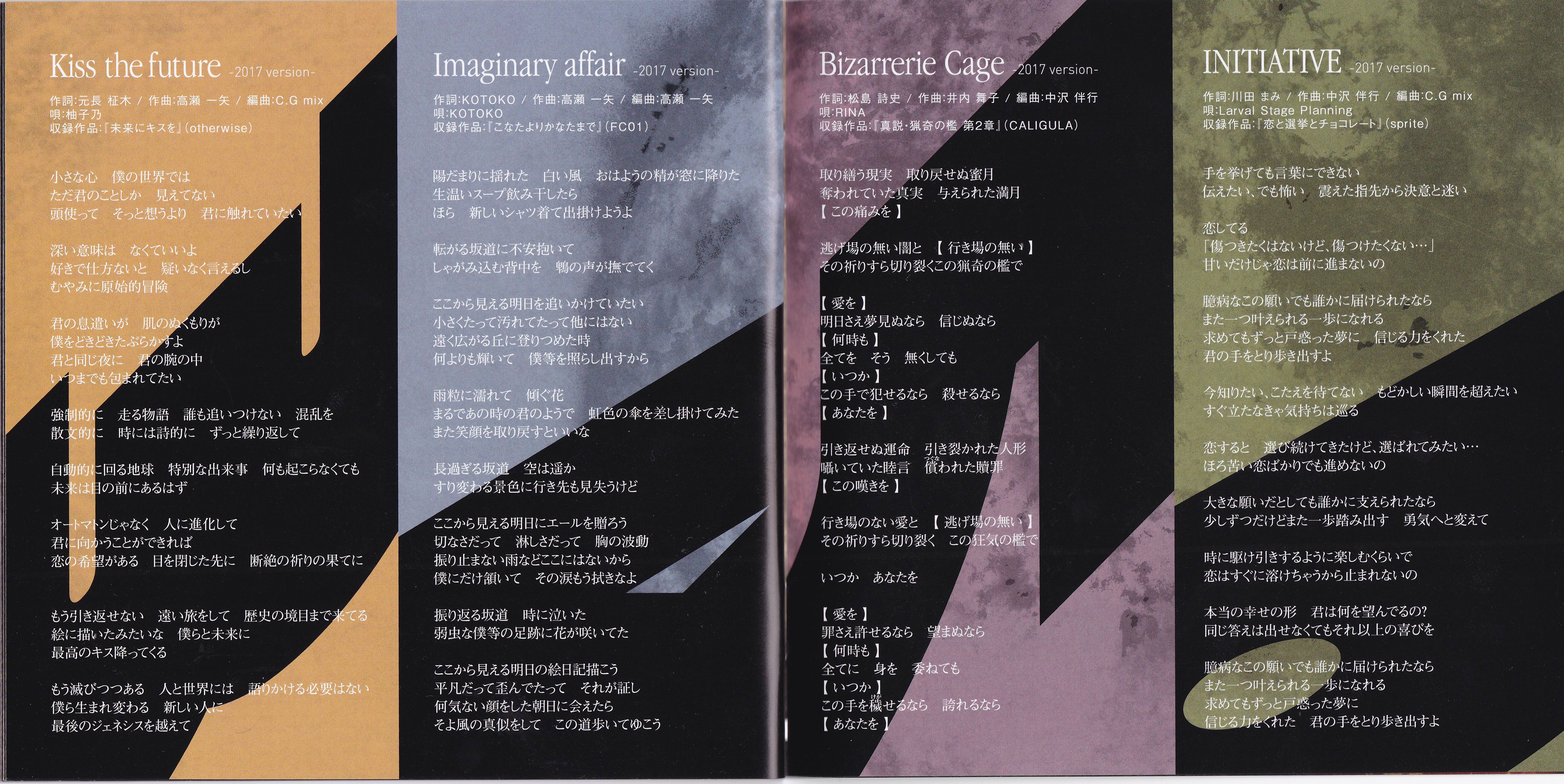 RECORDING DIRECTOR: C.G mix (FUCTORY records / I've), NAMI (FUCTORY records / I've), Tomoyuki Nakazawa, Takeshi Ozaki, Maiko Iuchi