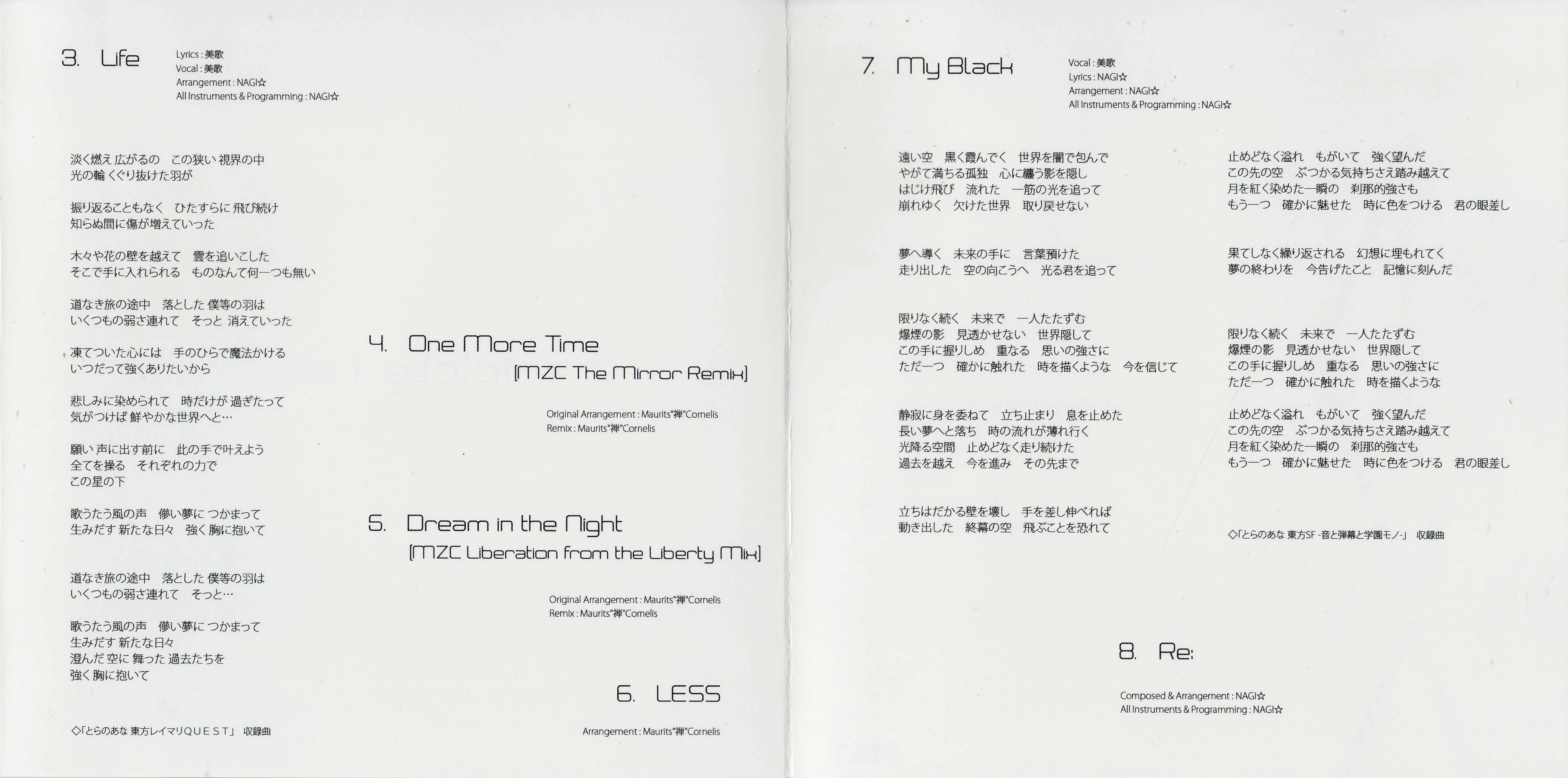 Lyrics: Mika (2,3), NAGI☆ (7)