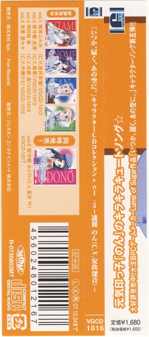 Itsuka, Todoku, Ano Sora ni. Character CD Collection vol.5 ~Non Toorimai (C.V. Oto Agumi)~