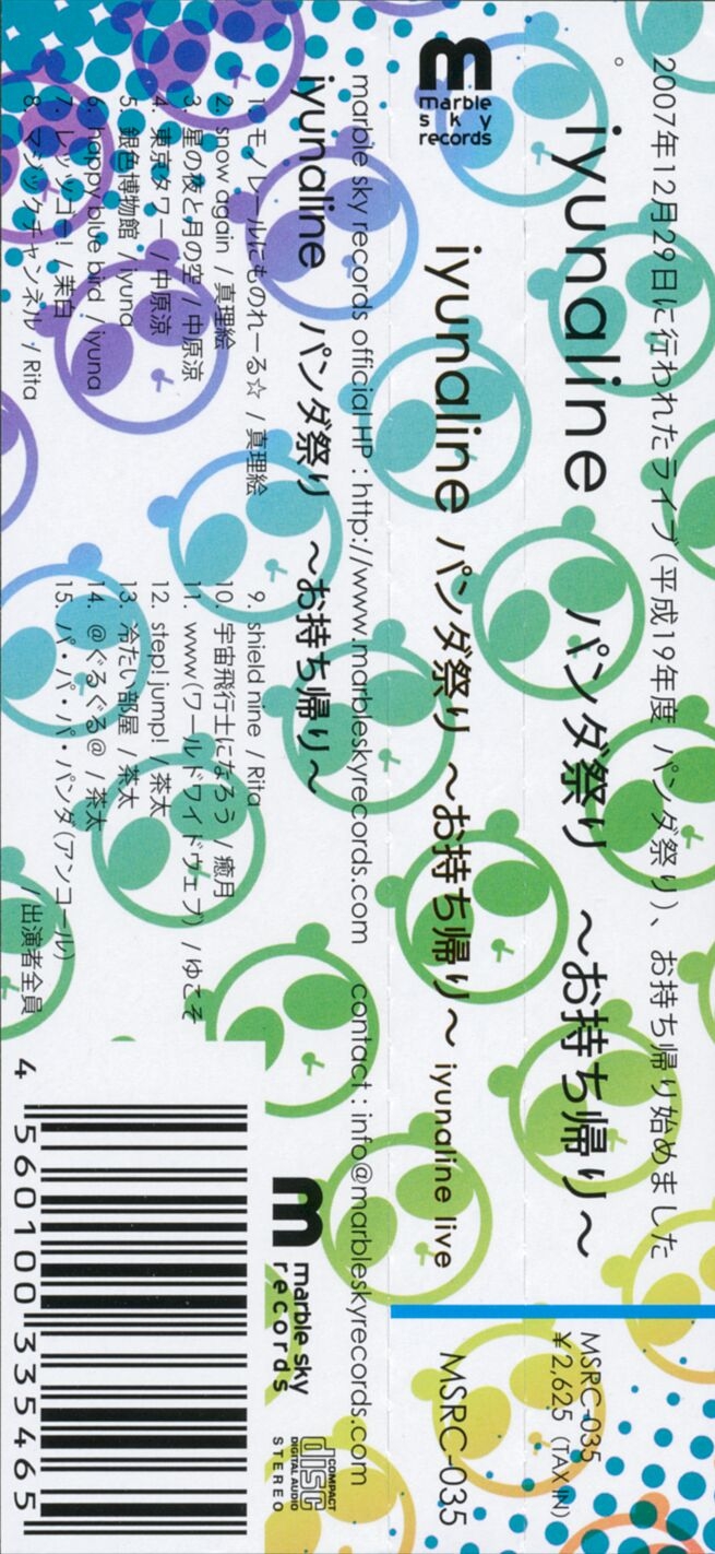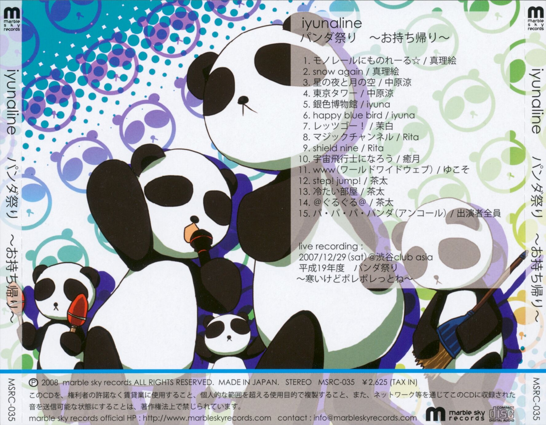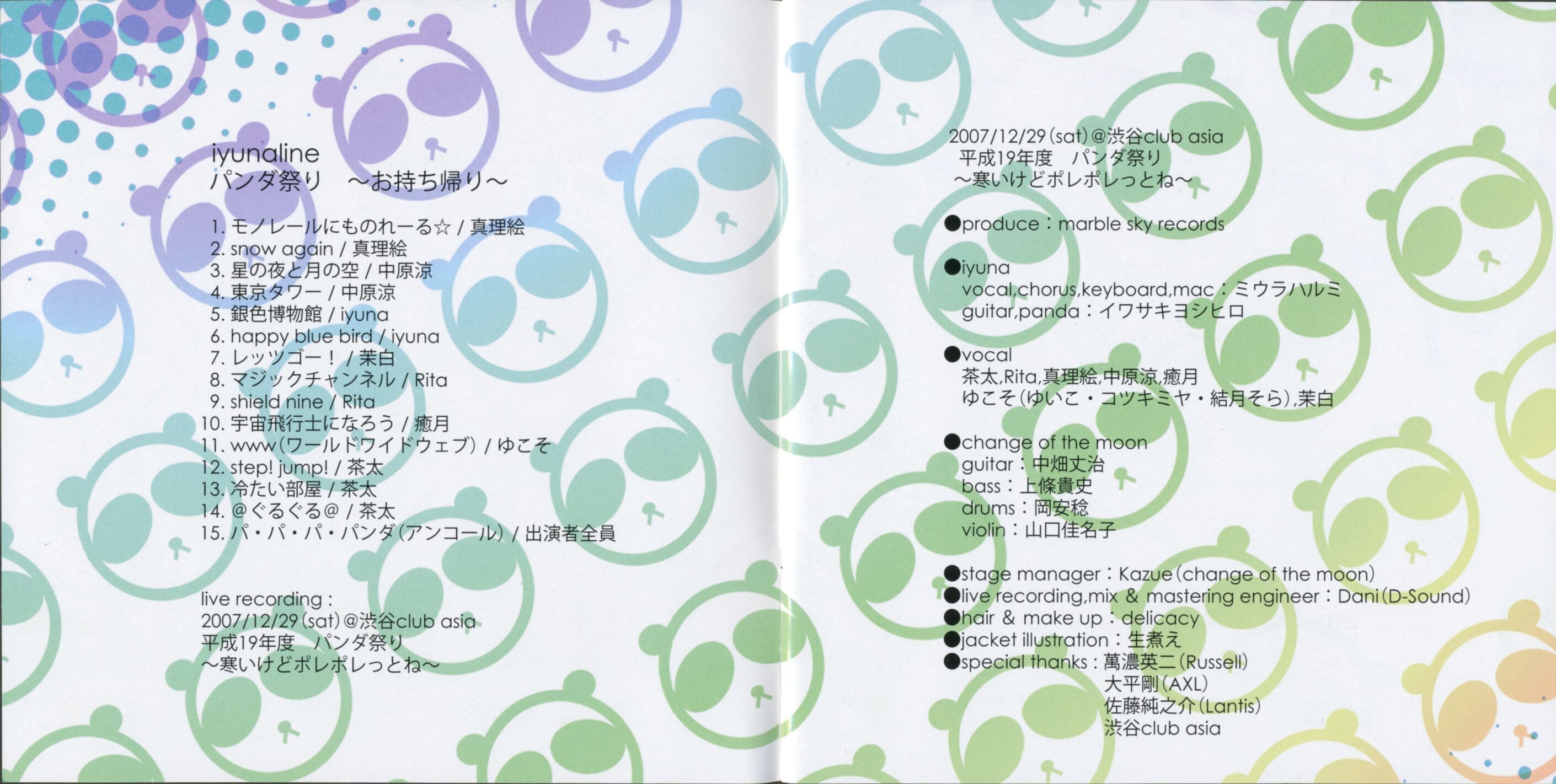 Live album of the "平成19年度パンダ祭り~寒いけどポレポレっとね~" live held on 2007.12.29 at 渋谷 club asia.