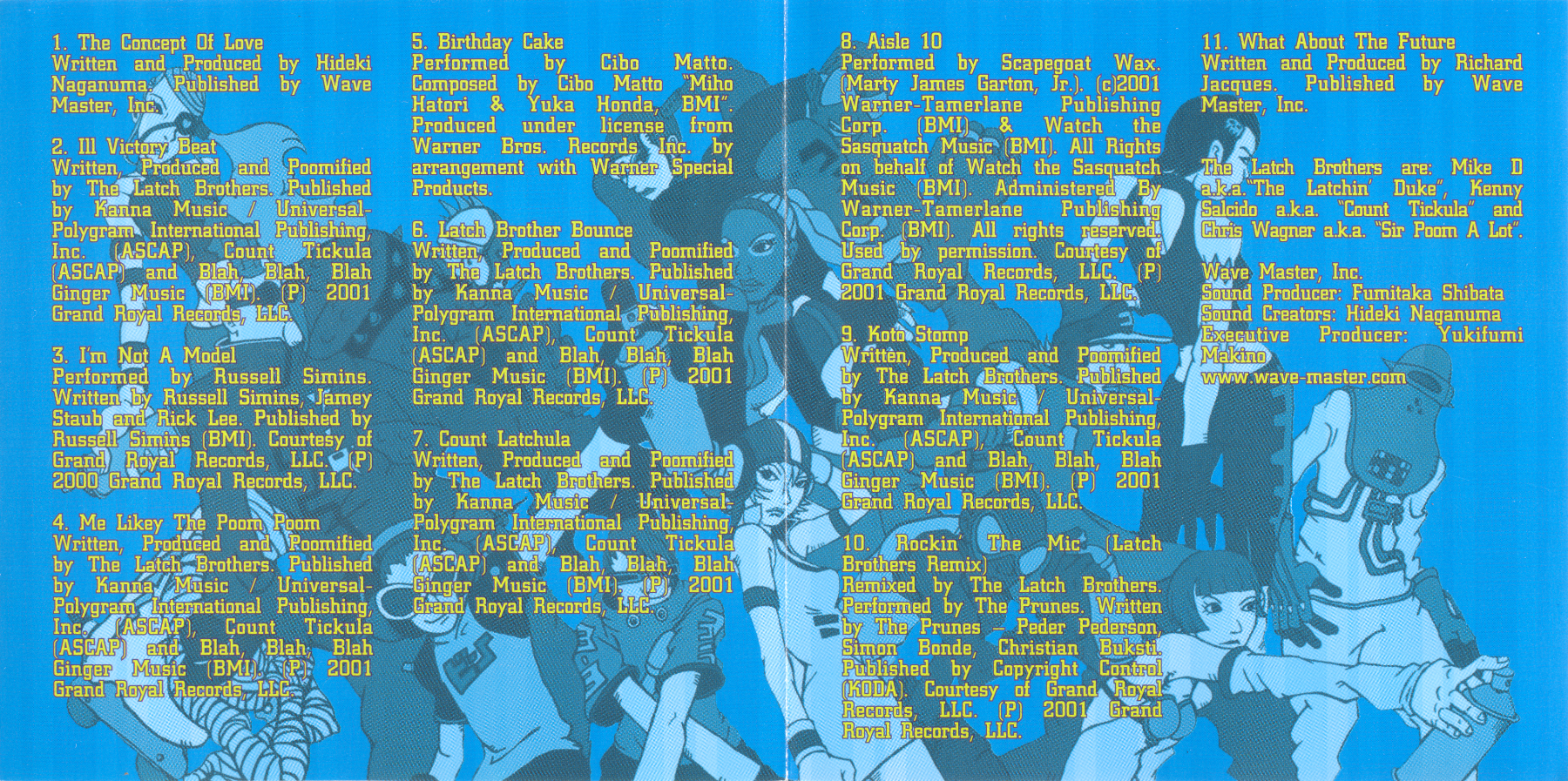 *Written and Produced and Poomified by The Latch Brothers. Published by Kanna Music / Universal-Polygram International Publishing, Inc. (ASCAP), Count Tickula (ASCAP) and Blah, Blah, Blah Ginger Music (BMI). (P) 2000 Grand Royal Records, LLC