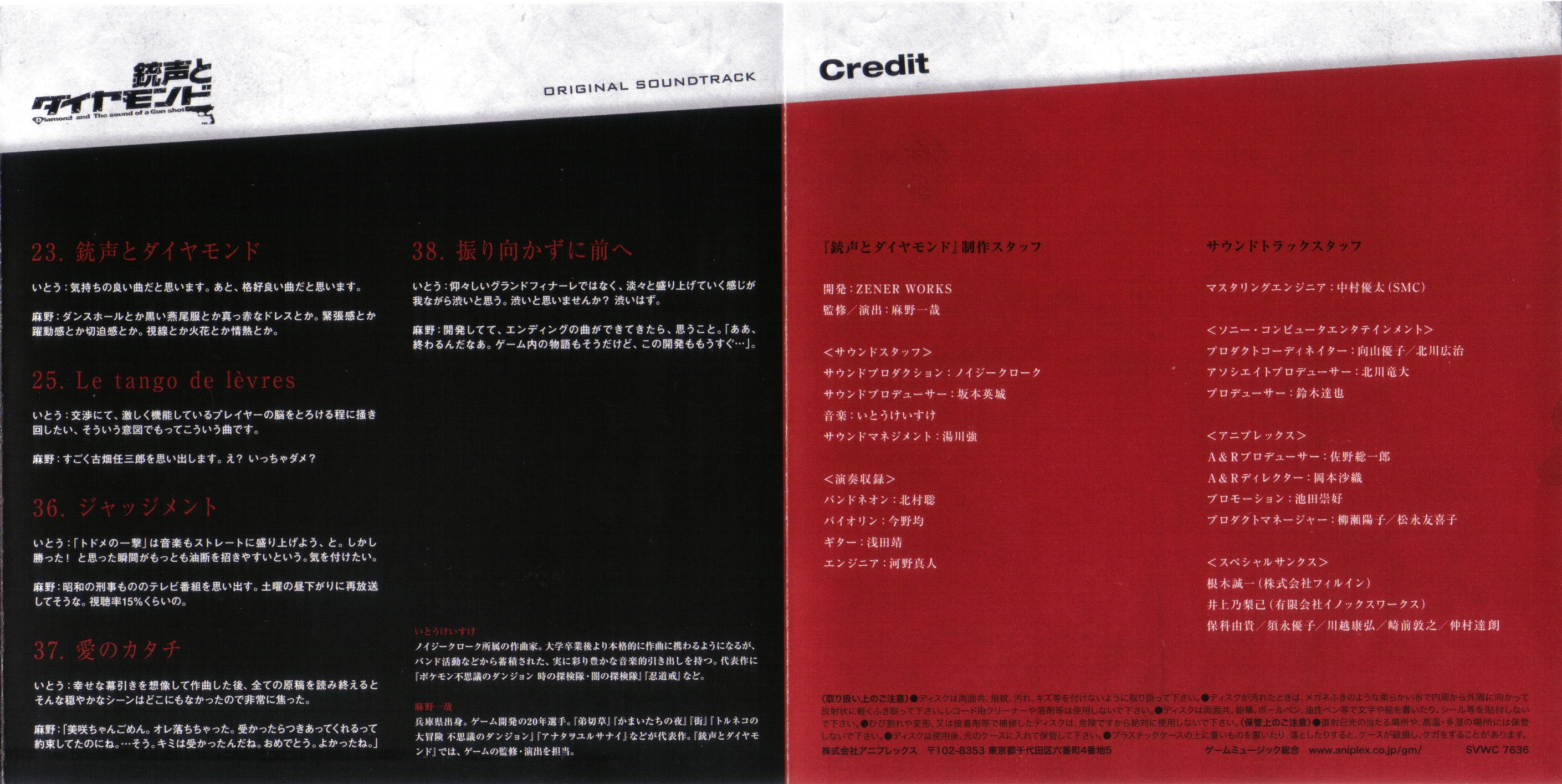 The booklet features track commentary by composer Keisuke Ito and game director Kazuya Asano.