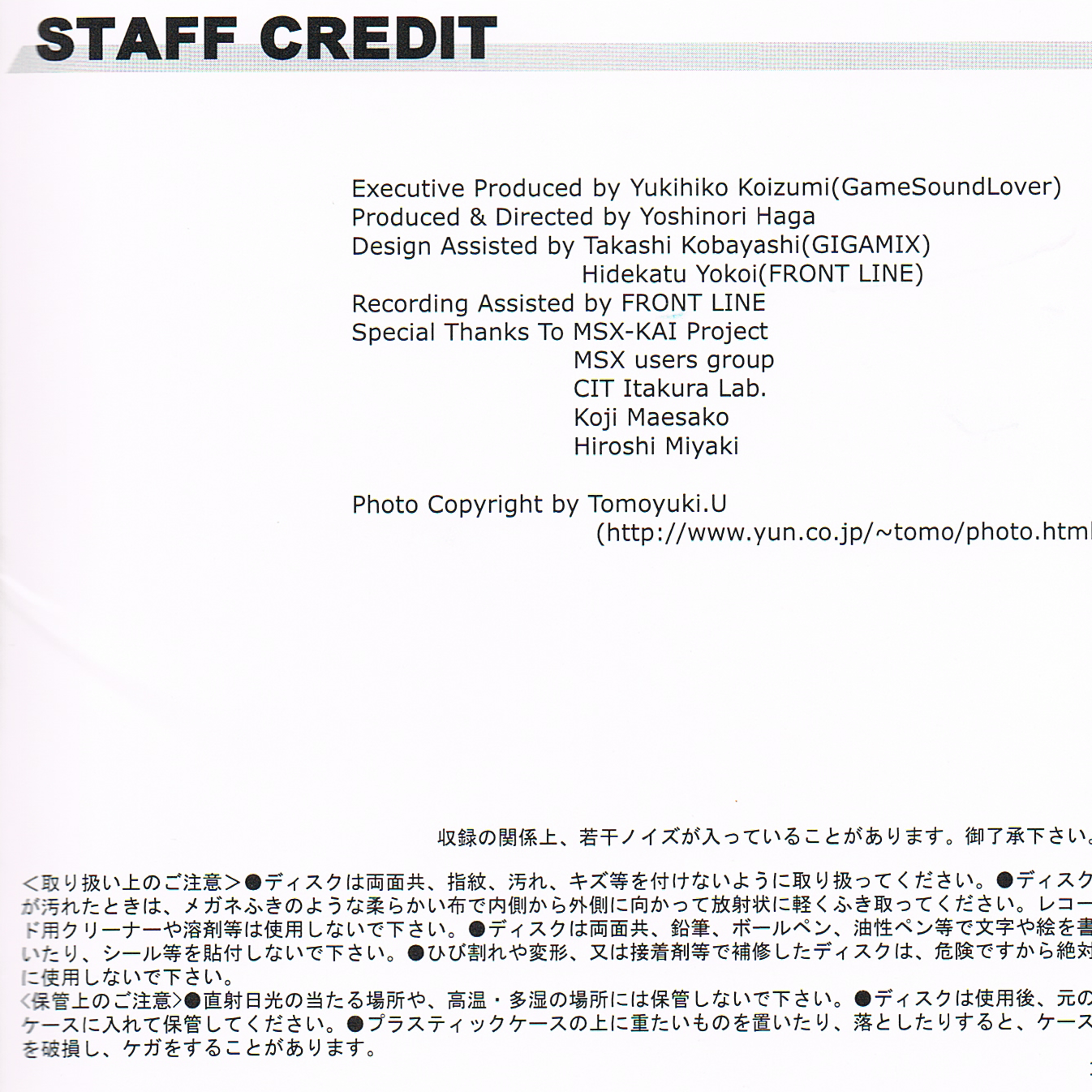 Special Thanks To MSX-KAI Project, MSX users group, CIT Itakura Lab., Koji Maesako, Hiroshi Miyaki