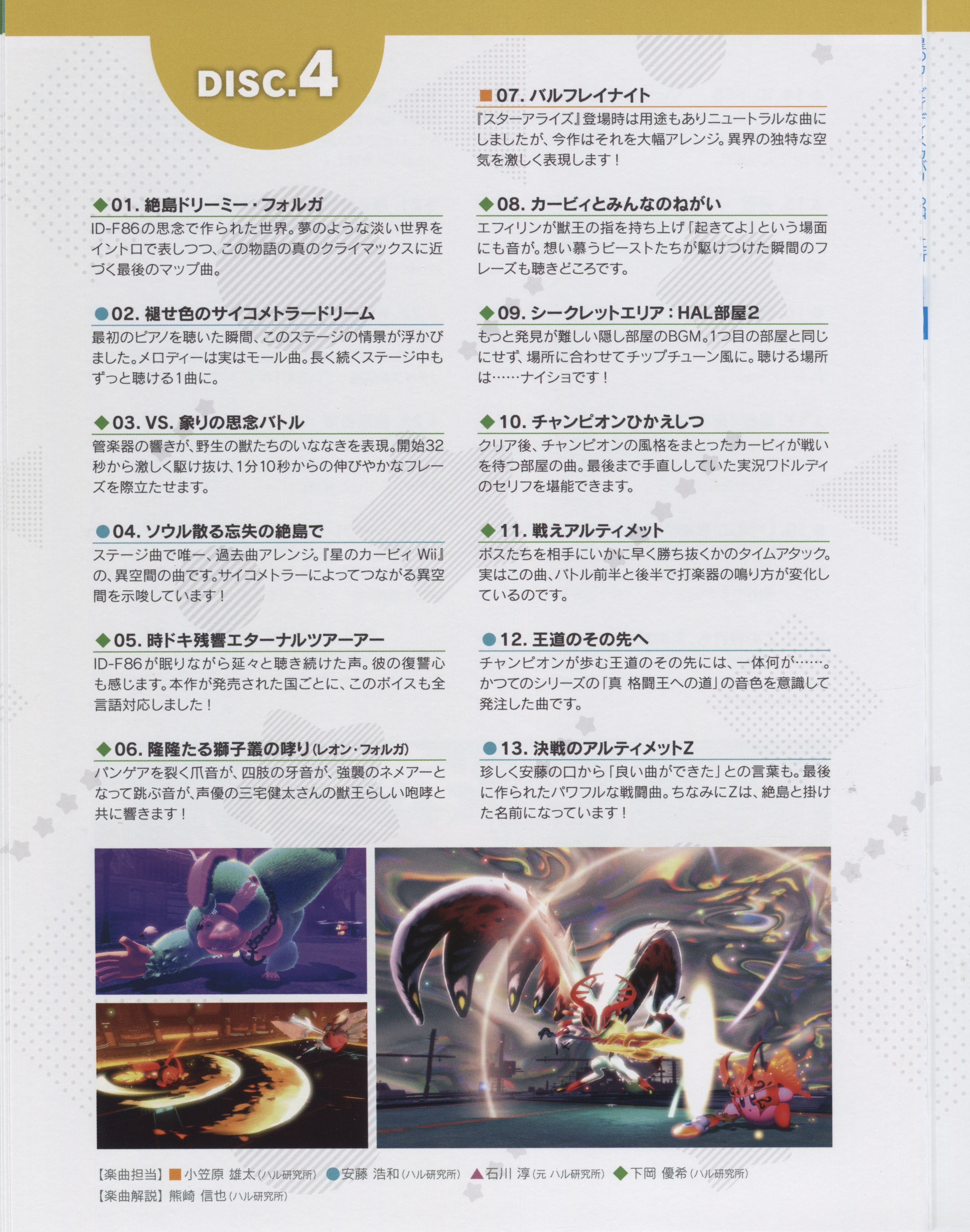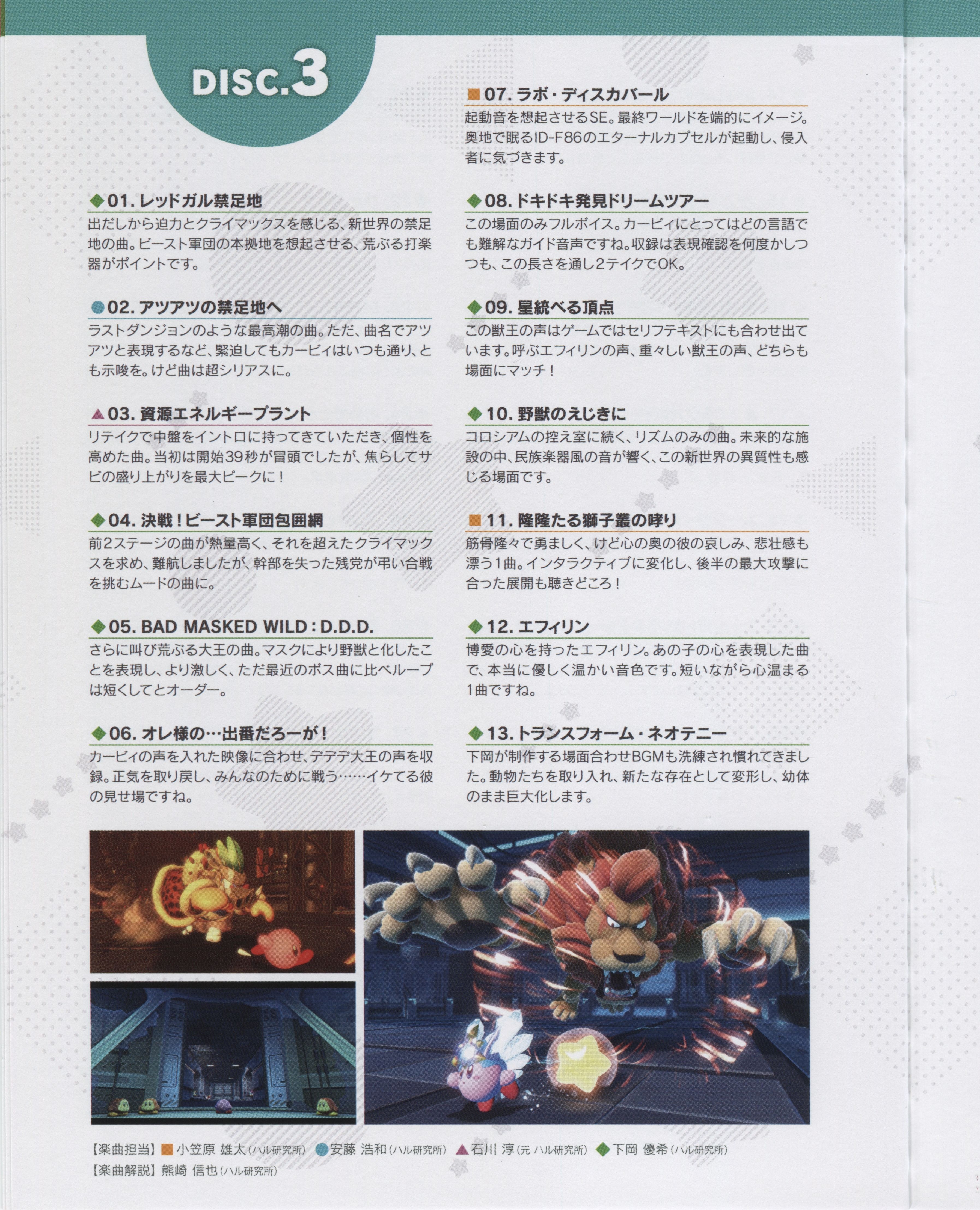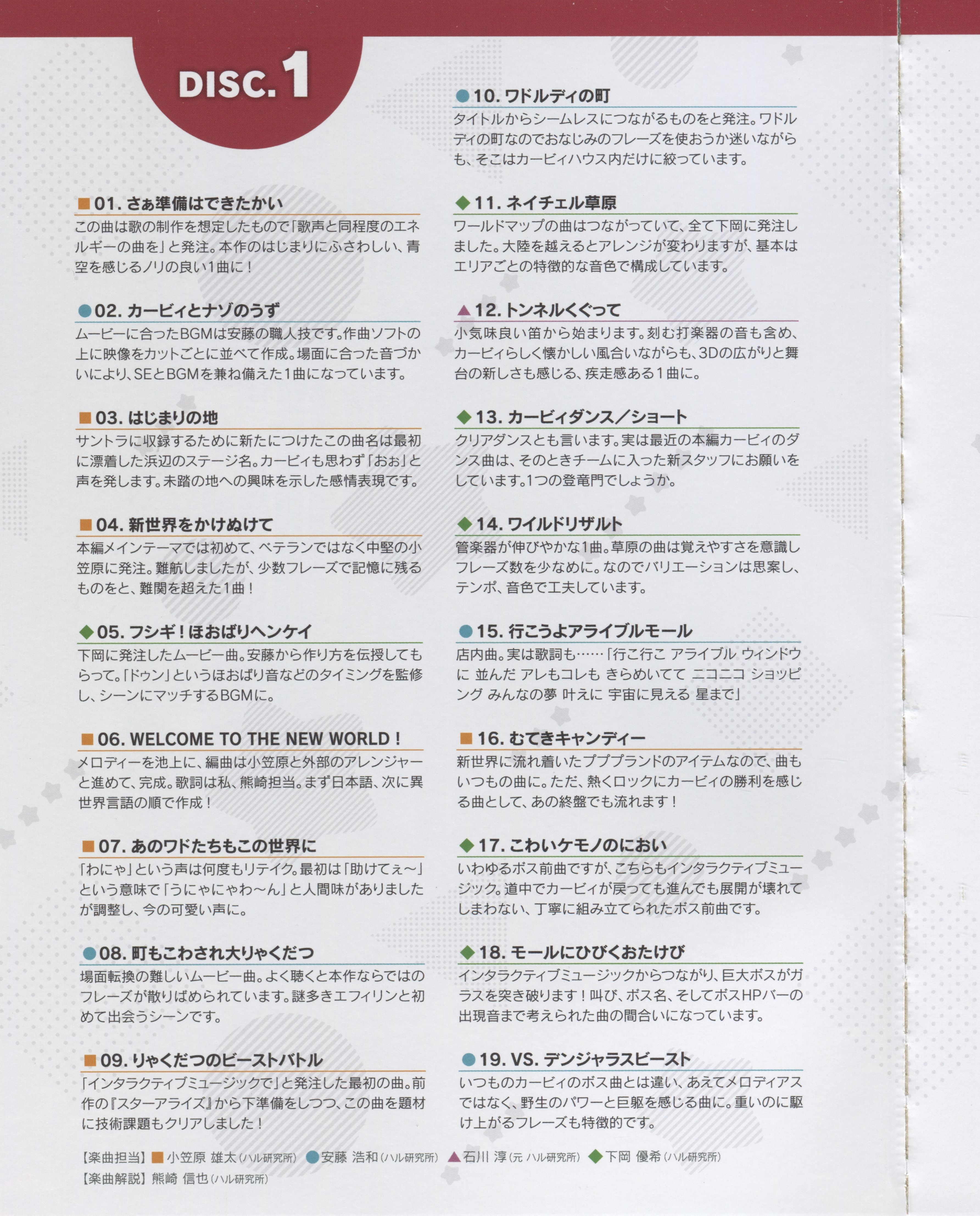 Arranger: Taro Nagata (TOYRO MUSIC), Yuuta Ogasawara (HAL Laboratory)