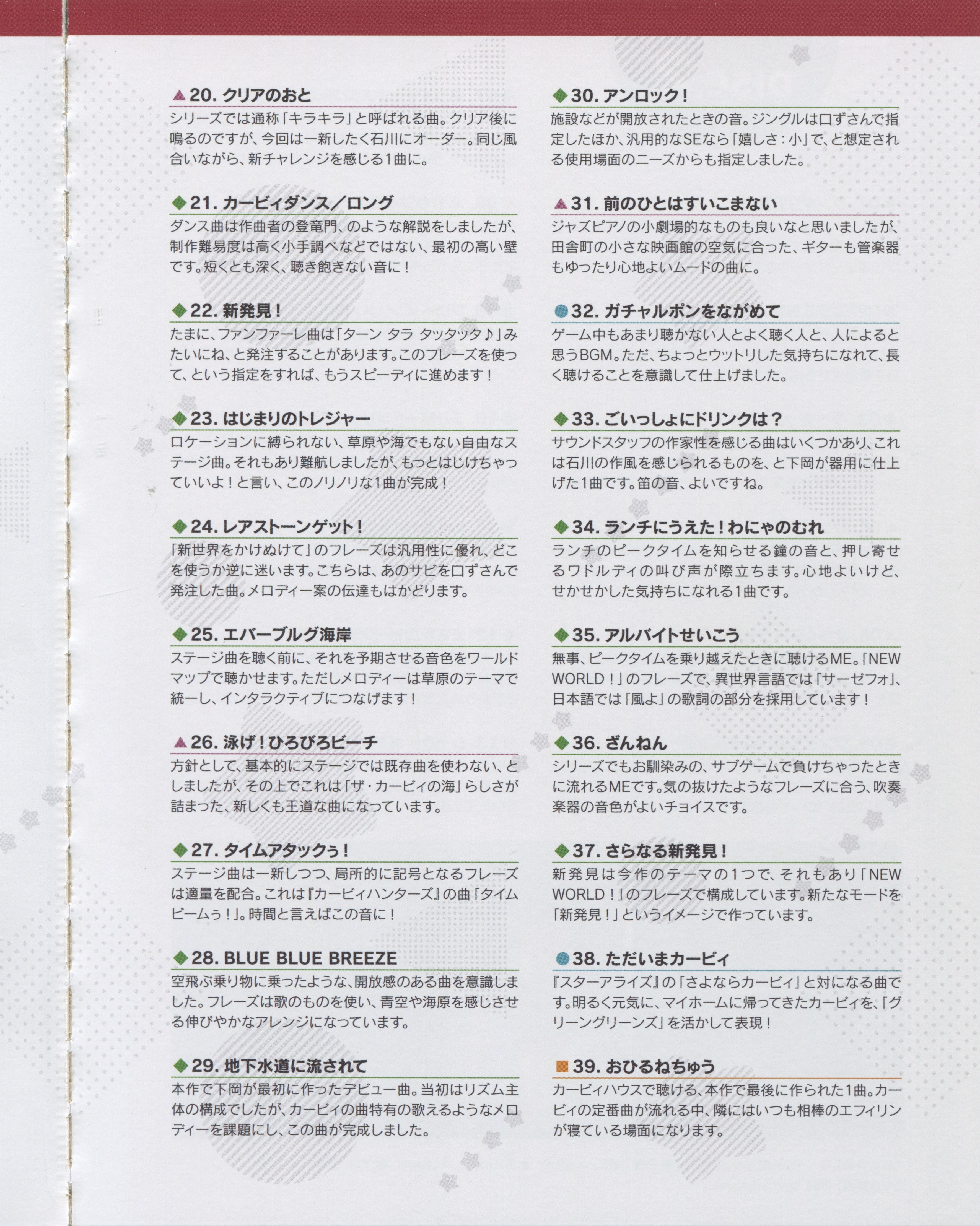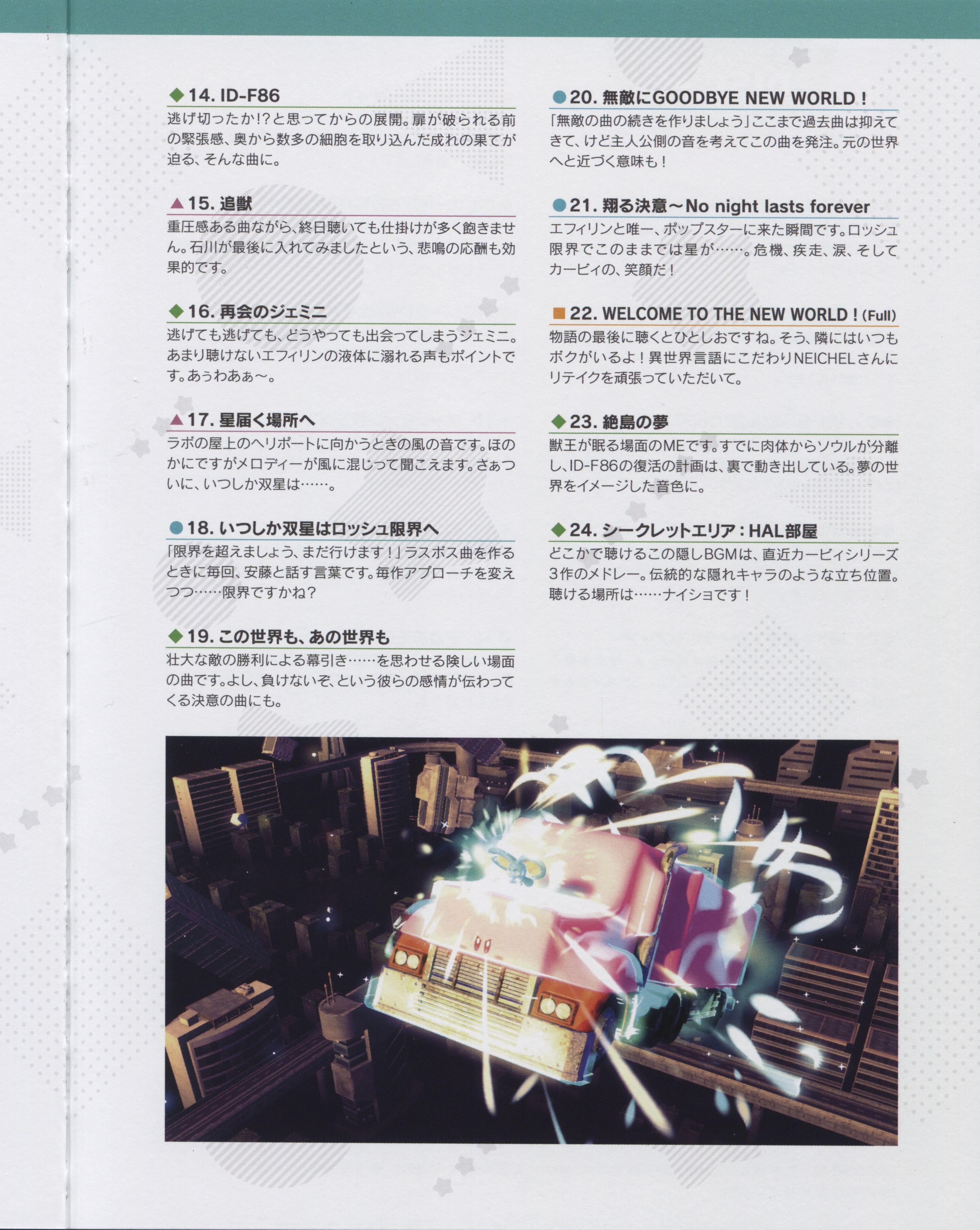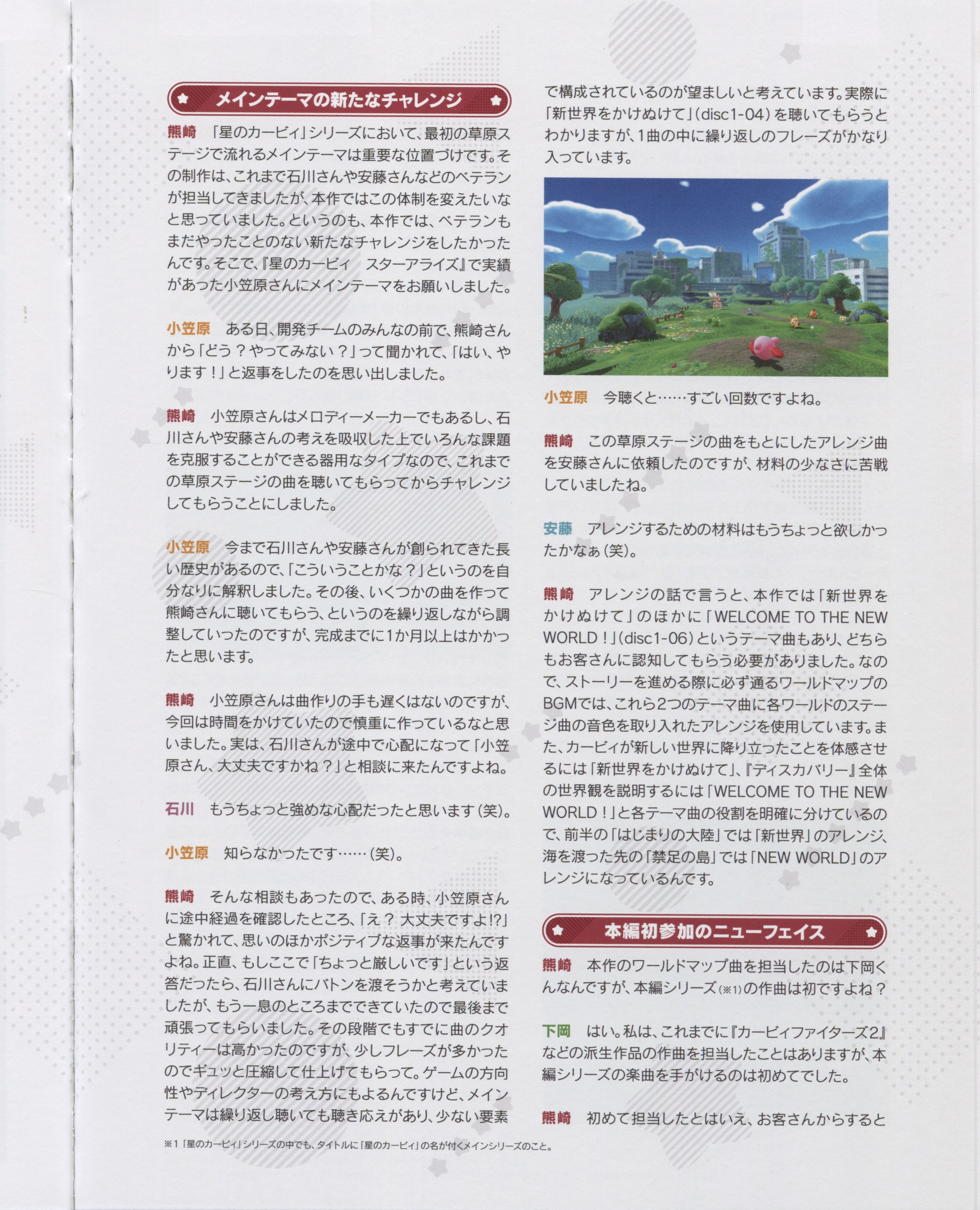 Arranger: Taro Nagata (TOYRO MUSIC), Yuuta Ogasawara (HAL Laboratory)