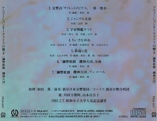 VIOLONCELLO: Makoto Hattori (服部 誠), Hiroshi Kato (加藤宏), Tadao Fukumura (福村忠雄), Keiko Dato, Yoshinobu Sasaki (佐々木良伸), Osamu Takahashi, Shinya Makino (槙野伸也), Yuko Yamamoto (山本裕子)