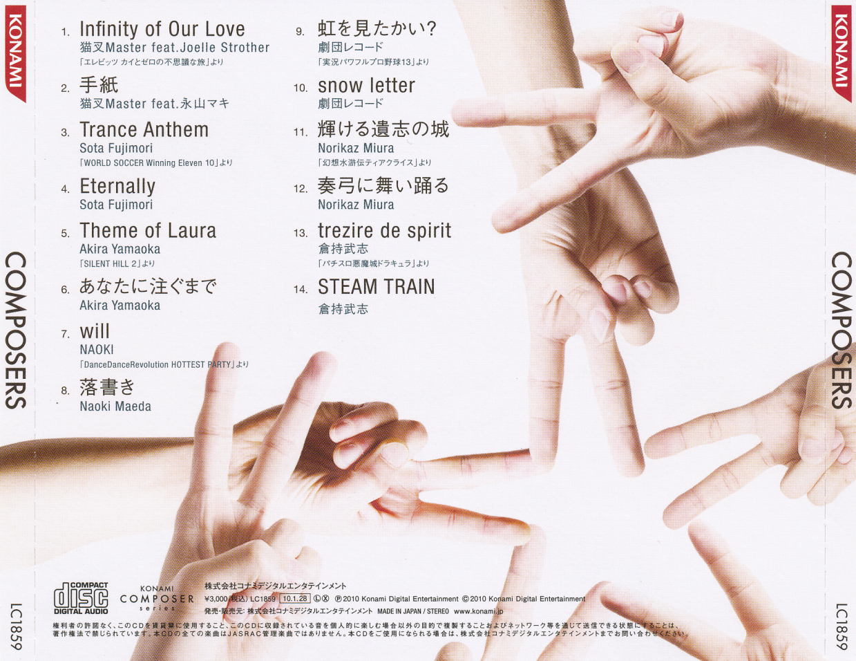 Contains one representative track and one original composition from seven Konami composers.
