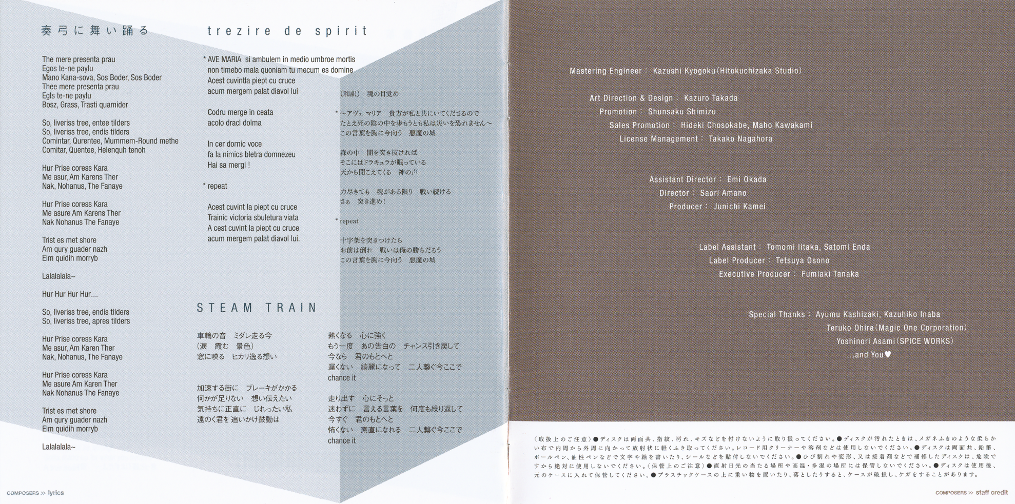 Mastering Engineer: Kazushi Kyogoku (Hitokuchizaka Studio)