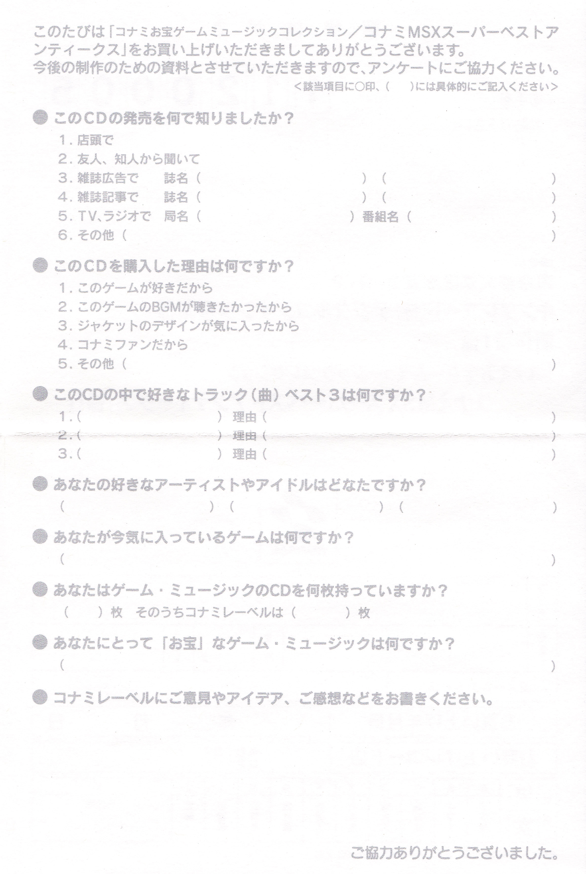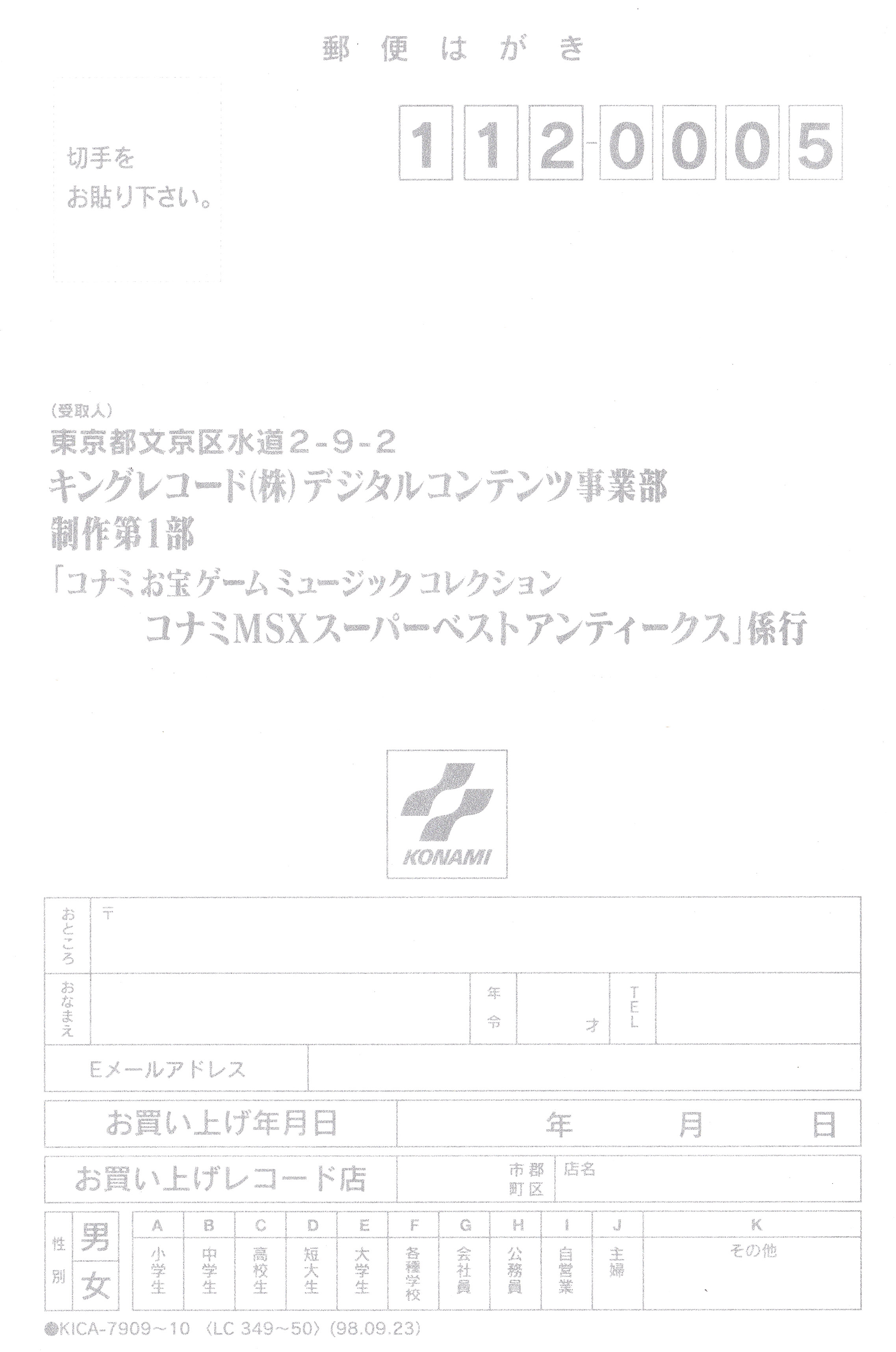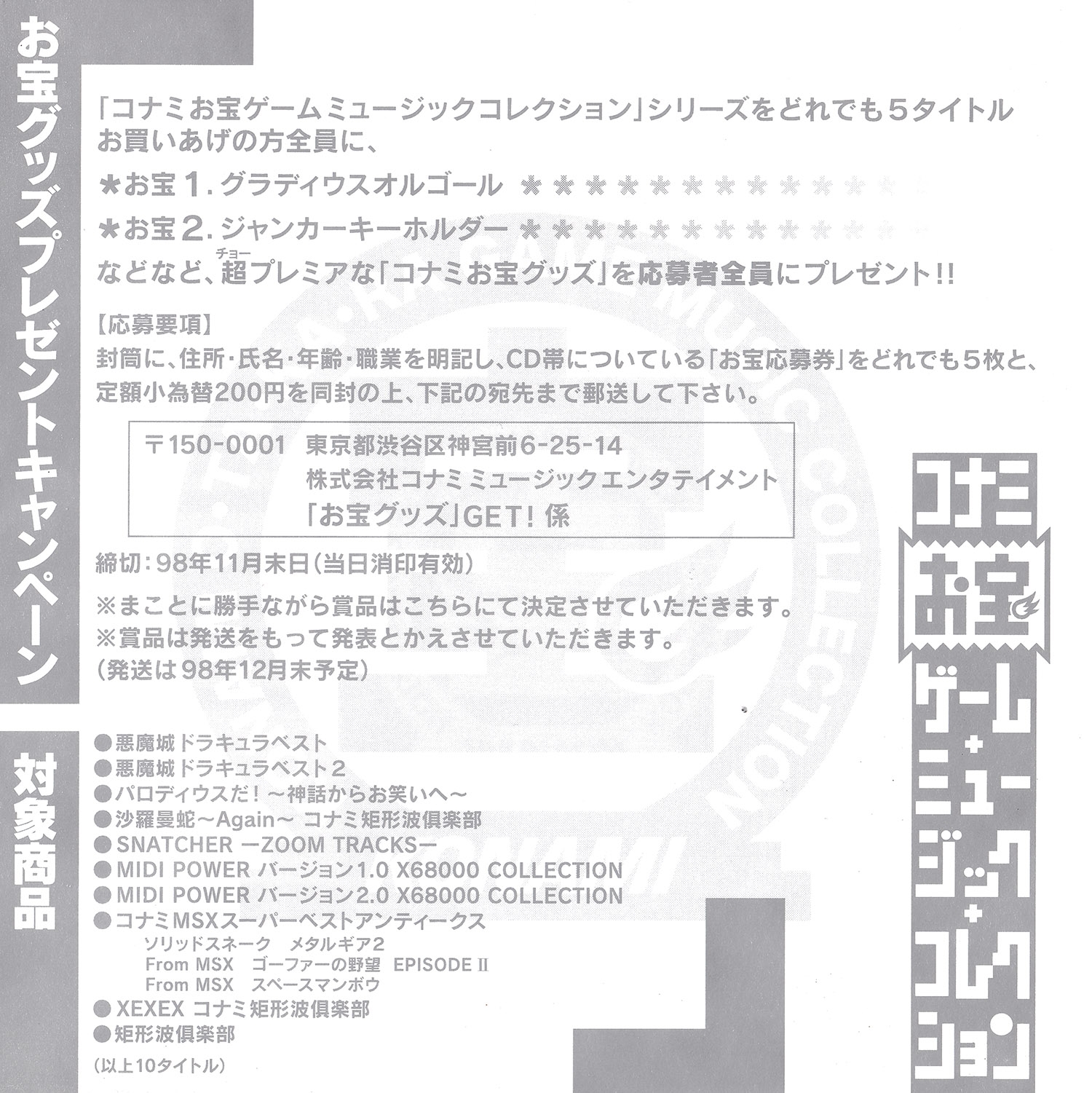 Published by: Konami, KONAMI O-TA-KA-RA GAME MUSIC COLLECTION