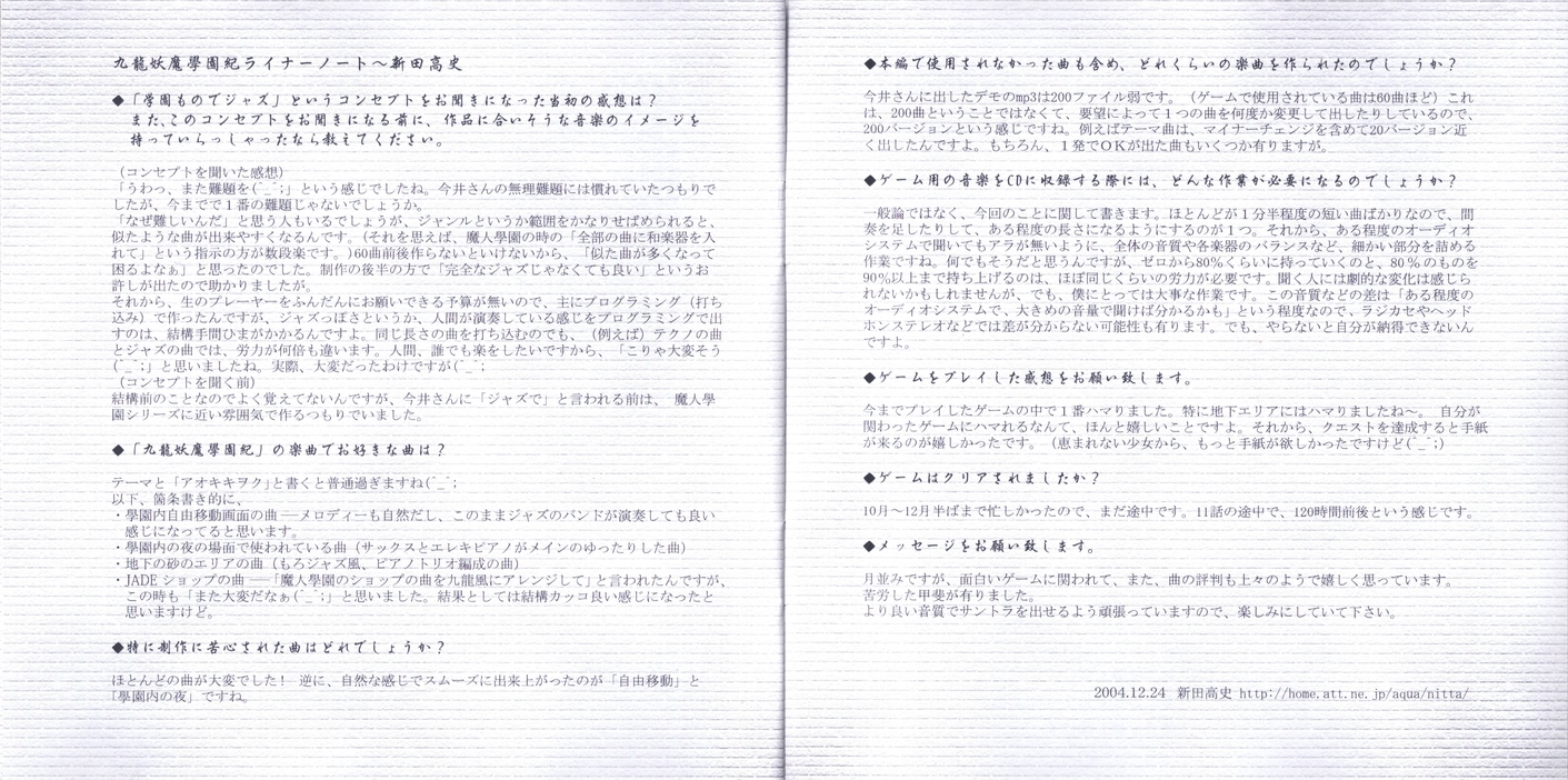 All Composed, Arranged, Music Programing & Sound Produce: Takashi Nitta