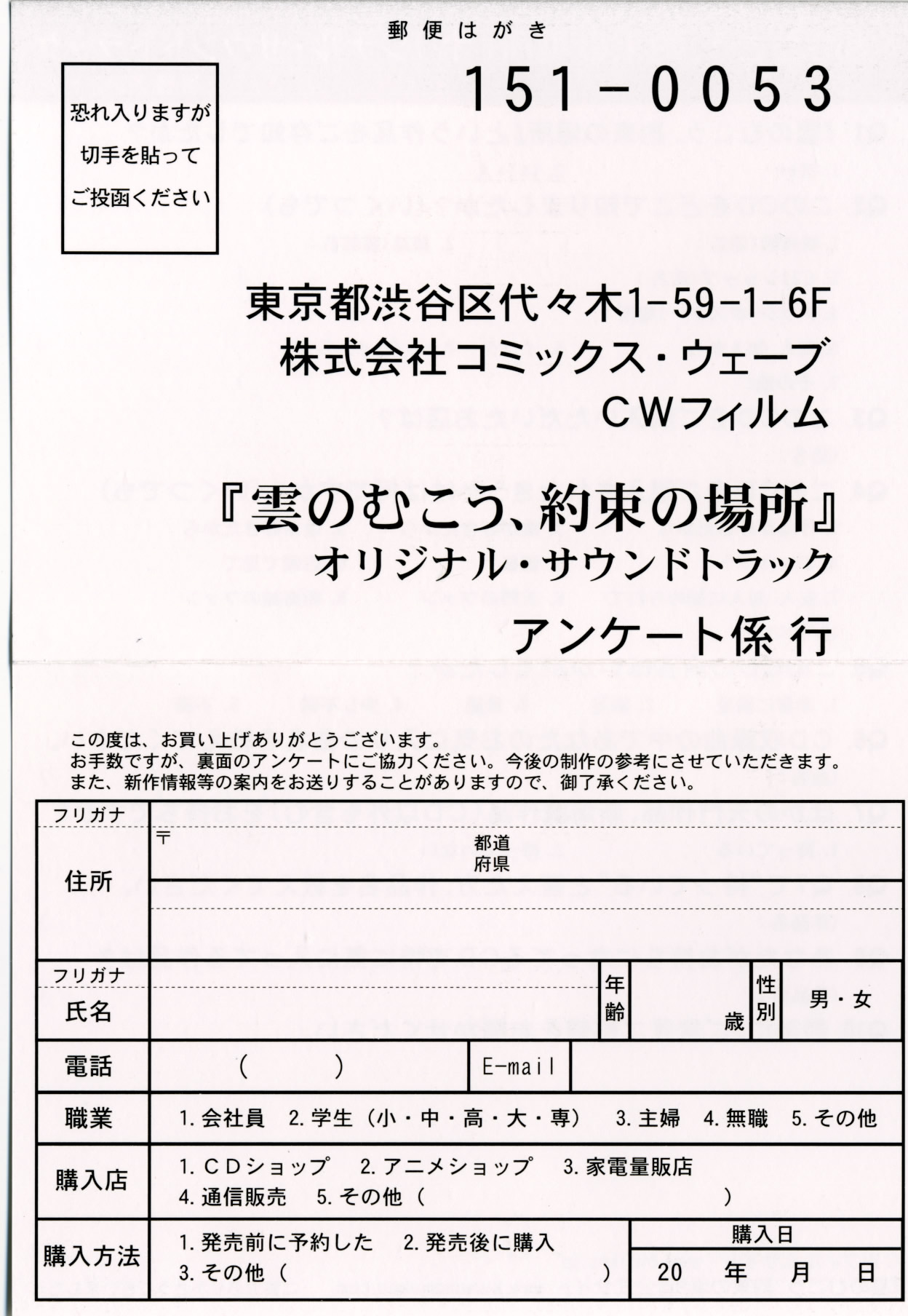 雲のむこう、約束の場所 オリジナルサウンドトラック