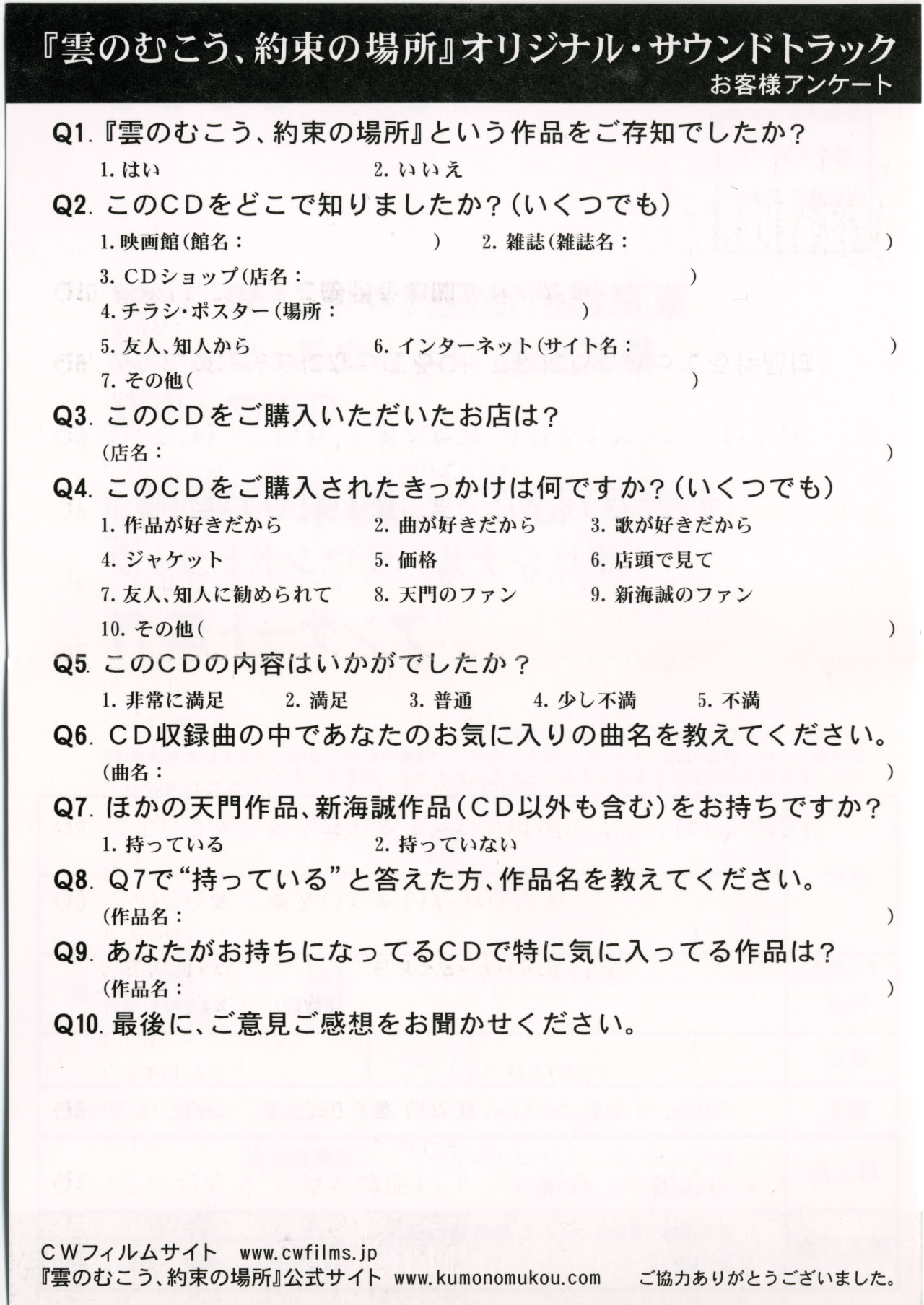 Kumo no Mukou Yakusoku no Basho Original Sound Track