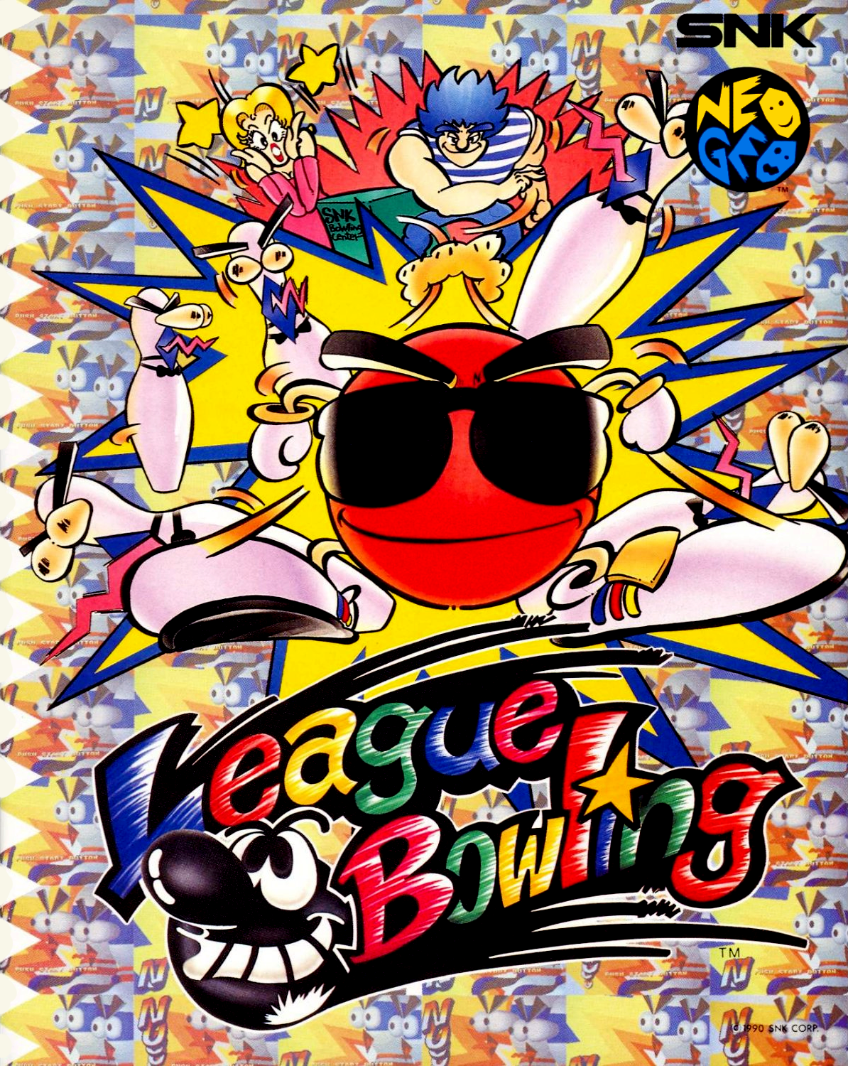 League Bowling is an arcade game released in 1990 by SNK for the Neo Geo console and arcade systems. The players controls characters with red and blue hair and can select balls from 8 to 15 pounds. It is the only bowling game released on the Neo Geo.