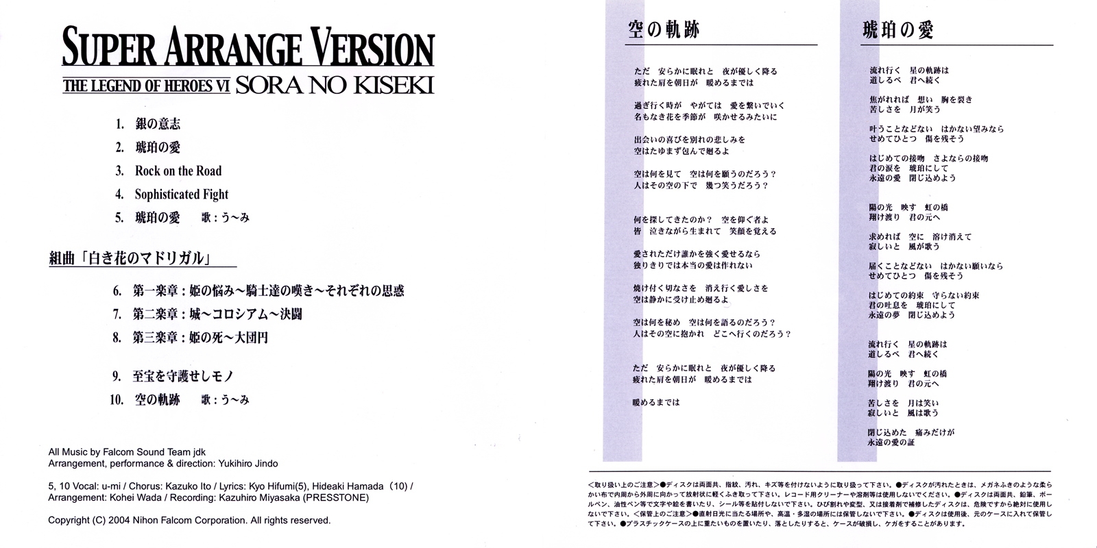 All Music by Falcom Sound Team jdk (Hayato Sonoda, Wataru Ishibashi, Takahide Murayama)