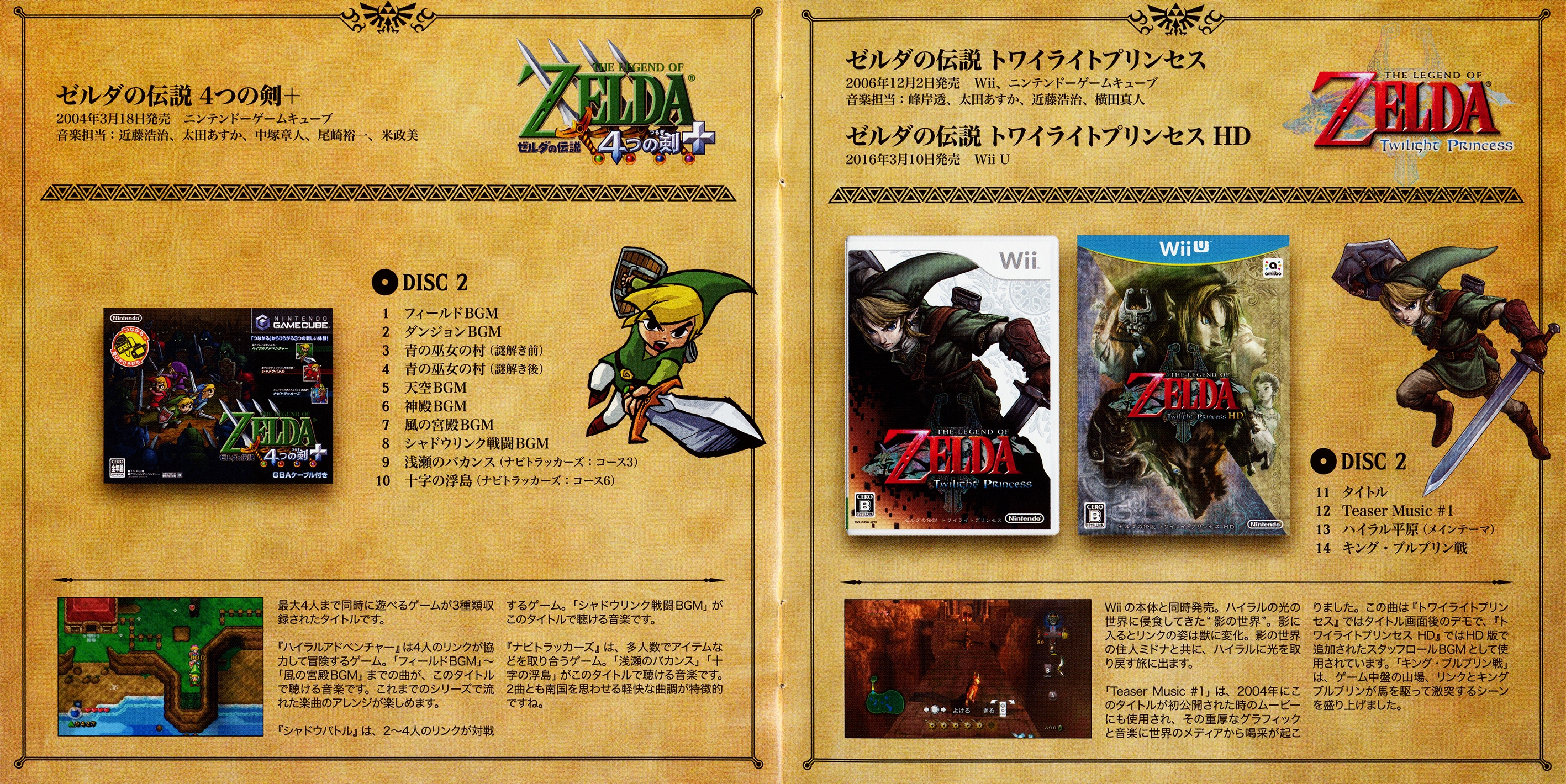 Tracks 9 & 10 are from the Japanese-only mode Navi Trackers, and these music credits are combined for both Navi Trackers and the main Four Swords Adventures mode