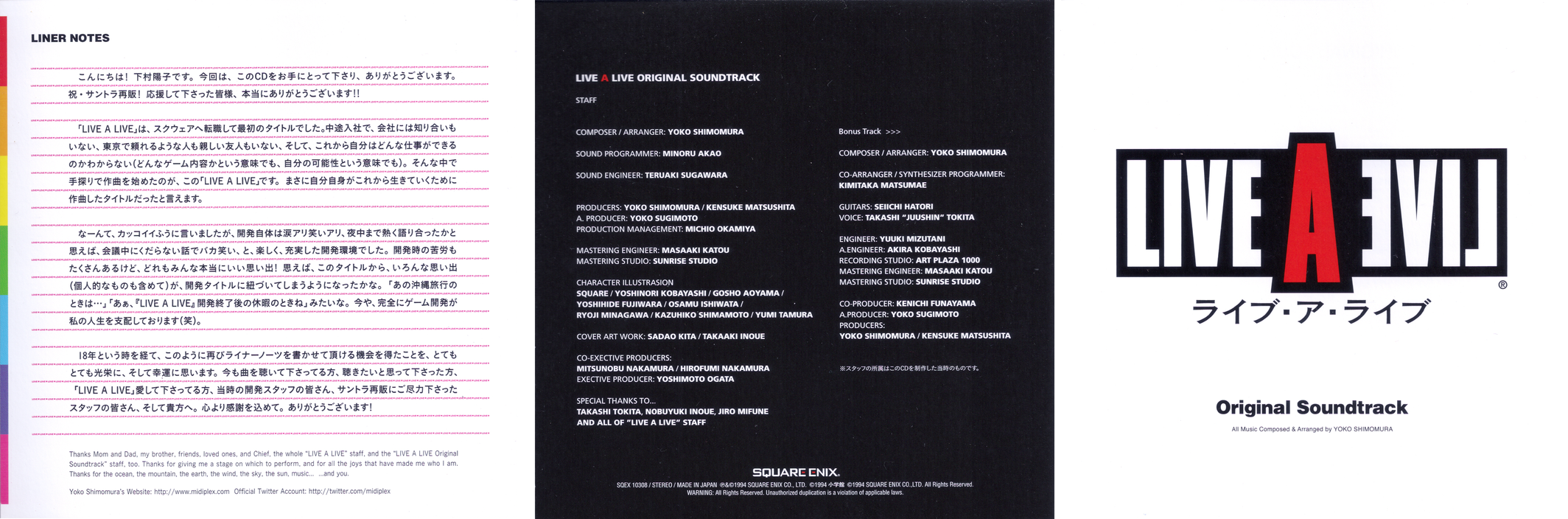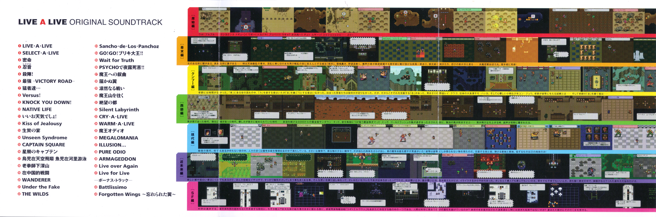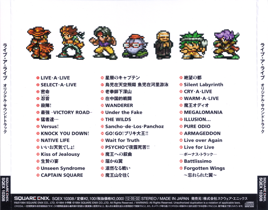 Tracks 42 and 43 are bonus arrangements originally published on the CD enclosed with the LIVE A LIVE Perfect Strategy Guide Book Limited Edition.
