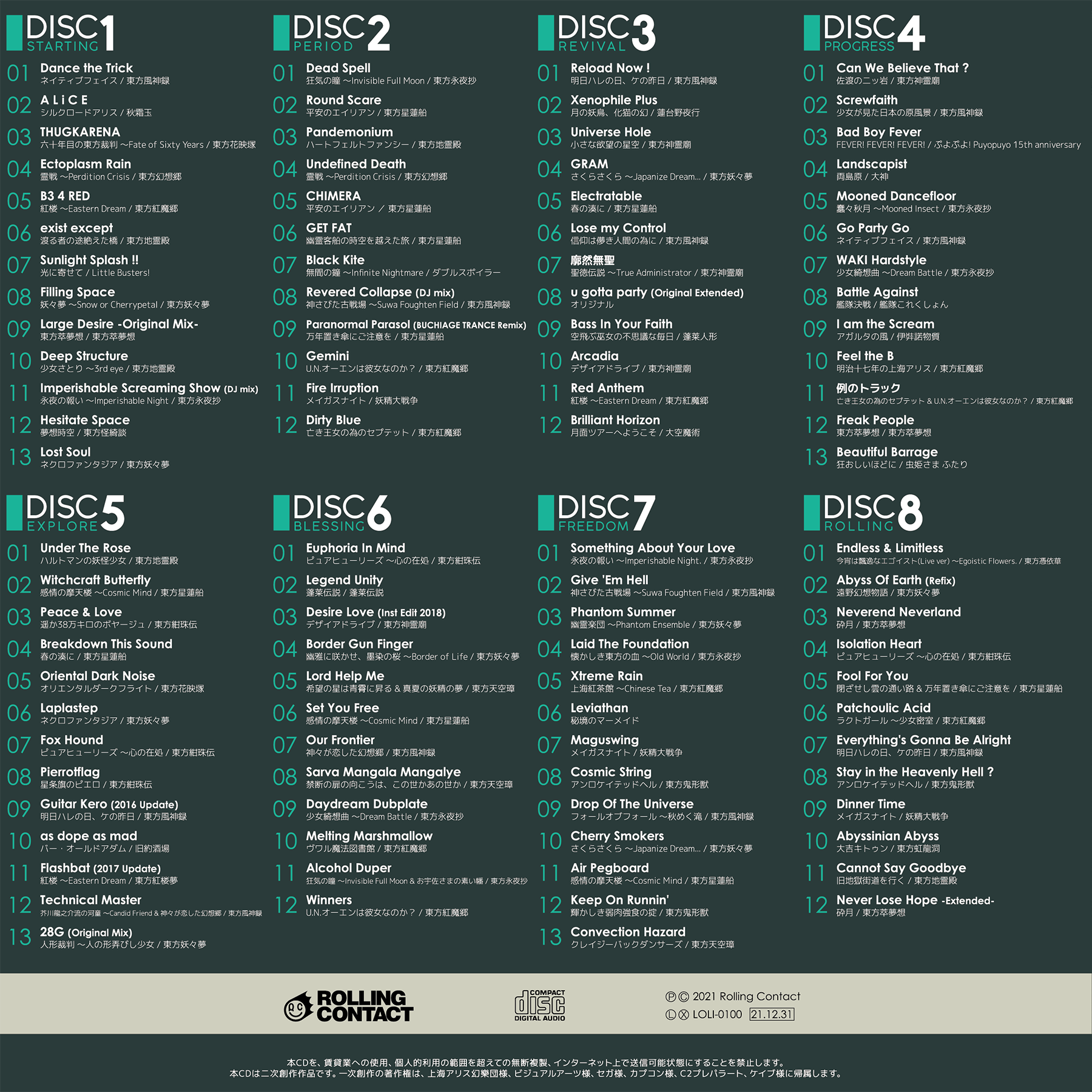 This Album Is A Special Commemorative Album For Being The Number 100 In Rolling Contact Discography.It iI Made Up Of 8 Discs With The 100 Best Songs In The Entire Discography.