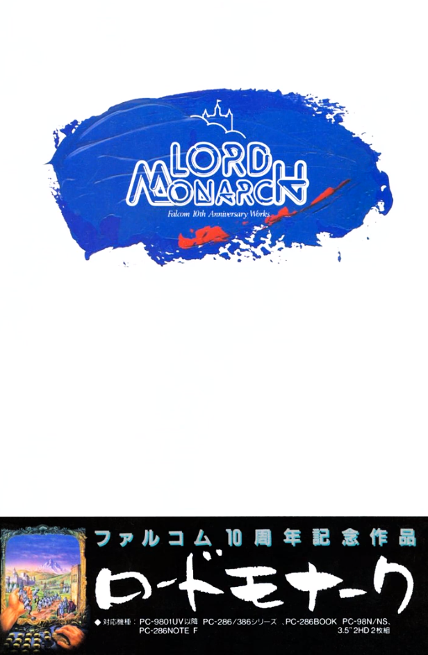 A special OPNA version of Lord Monarch released for systems with Speakboard sound cards. Unfortunately it is technically a demo version and not all tracks from the game received these OPNA upgrades, so some are missing.