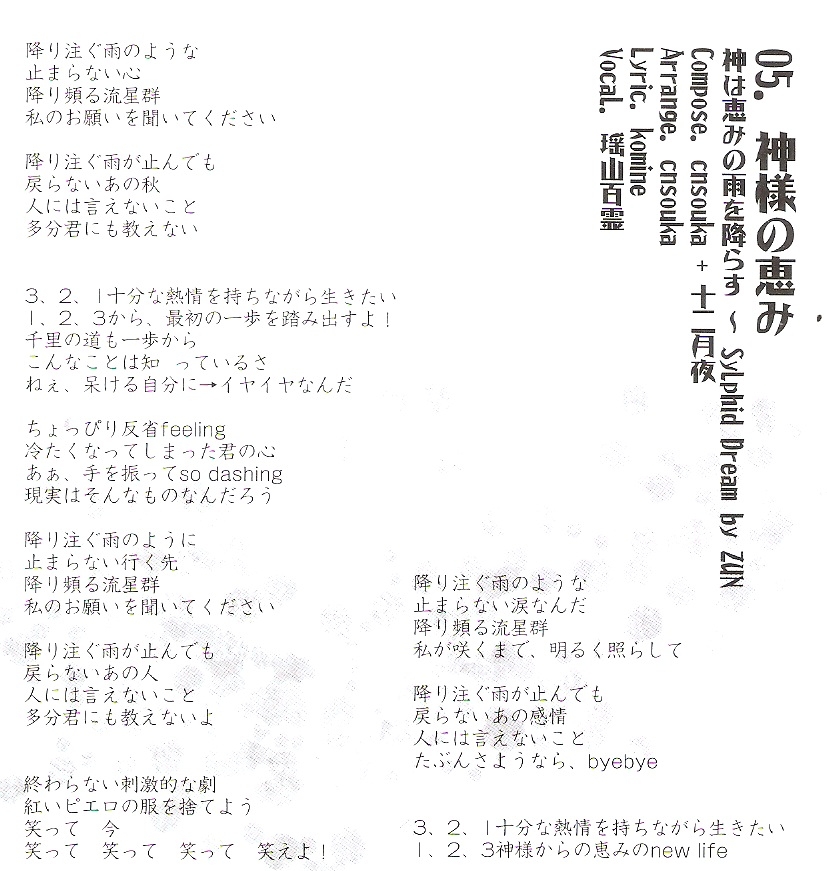 Original Song: 神は恵みの雨を降らす~Sylphid Dream (Touhou Fuujinroku ~ Mountain of Faith)