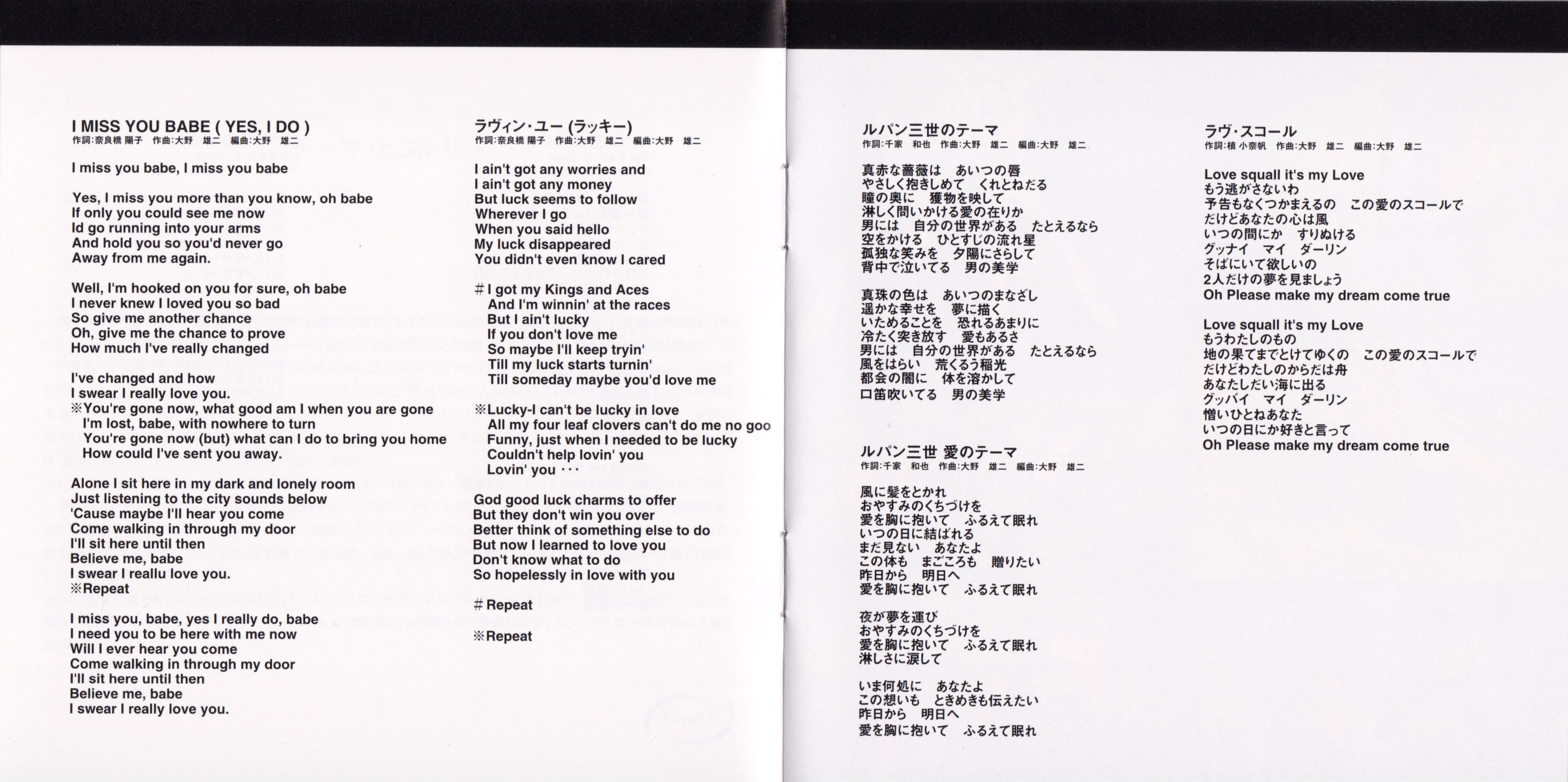 Lyrics by: Tokyo Movie Kikakubu (01,02,17*,18*,19,20 *uncredited on the booklet)