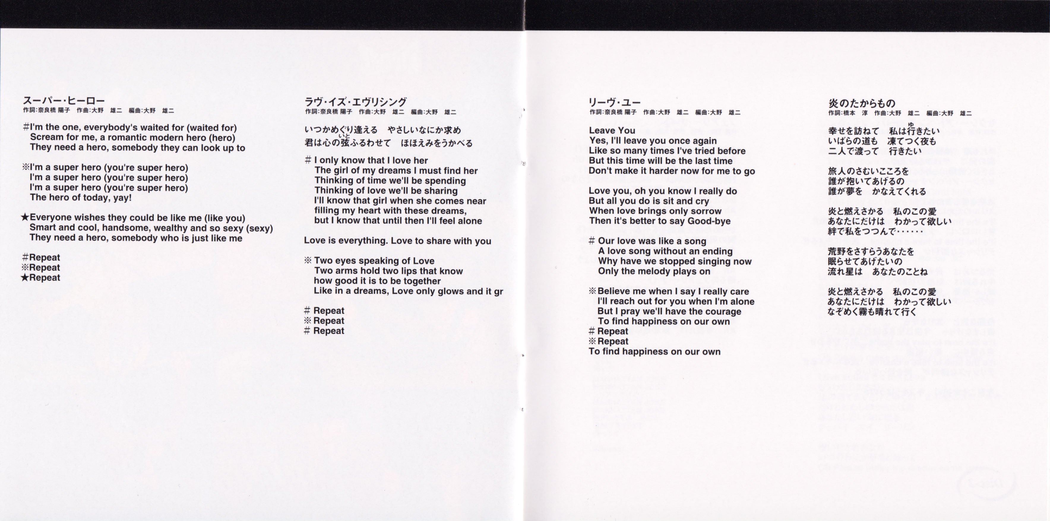 Lyrics by: Mebae Miyahara (01,02,06,07,16)