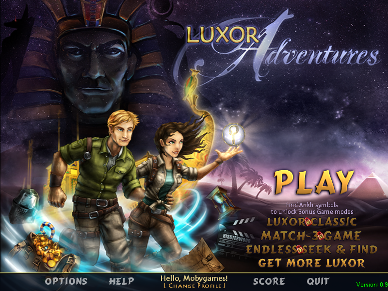 Luxor Adventures is a hidden object spin-off of a series of popular marble-shooter games, where most of the time the objective is to find and click on all the items listed at the bottom of the screen, on historical locations filled with assorted objects scattered through the scenery. The player has 45 minutes to finish each episode, comprised of several locations, with a mini-game to be completed at the end. Besides the list entries, each scene has two Ankhs that can be optionally collected to unlock bonus features, like the endless mode and direct access to the mini-games through the main menu. The hint button is located under the figure of Thoth, the Egyptian god of wisdom, holding a swirling blue orb that shows the position of one of the required items, but takes some time to recharge after use.