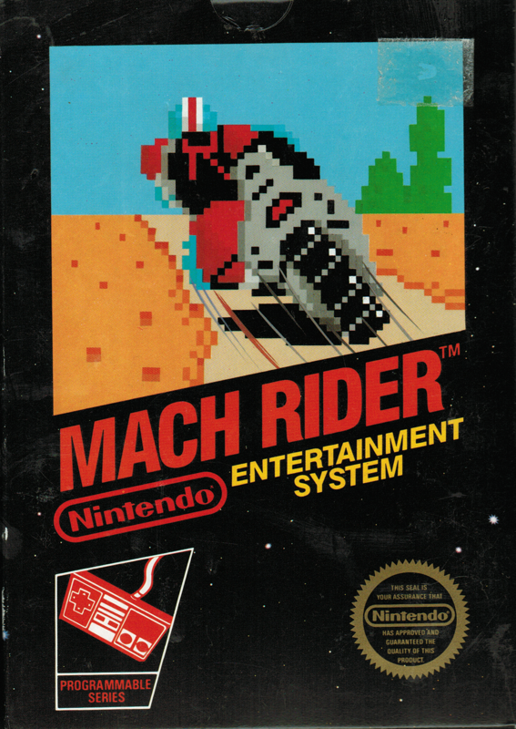 Mach Rider takes place in the year 2112, and planet Earth has been invaded by evil forces driving vehicles known as Quadrunners. The player controls Mach Rider, who travels from sector to sector on a high-powered superbike, searching for survivors and destroying any enemies in their path.