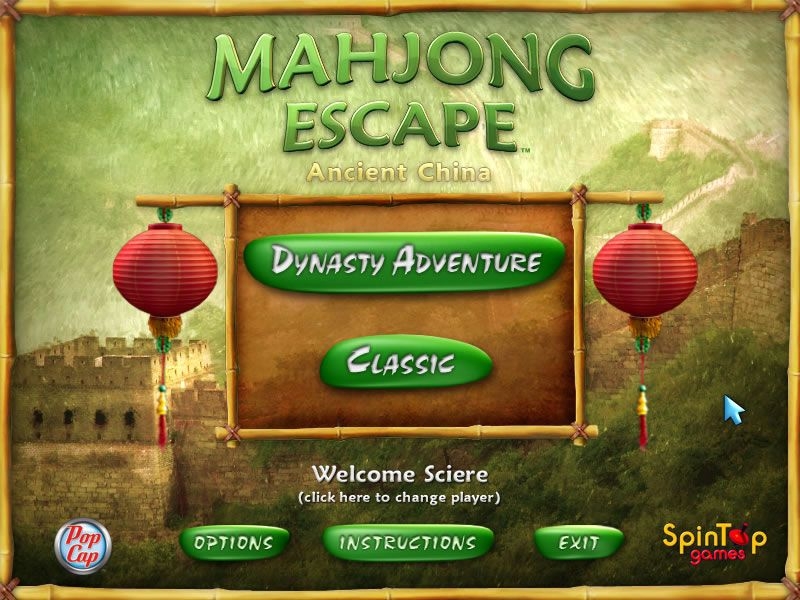 Mahjong Escape: Ancient China is a Mahjongg variant set against a background of Ancient China. In the Dynasty Adventure mode, players travel through the history of China's dynasties, from 2000 BC to 1912 AD. In the second, Classic game mode, any of the 125 available layouts can be selected to complete.