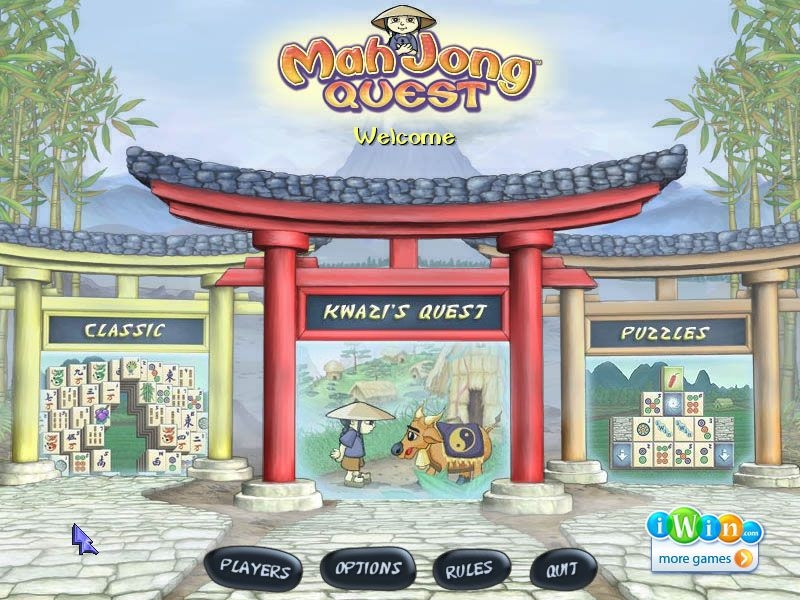Mah Jong Quest is a Mahjongg Solitaire game with a storyline. Kwazi is playing with his ancestors' set of Mahjongg tiles one day when a trio of dragons ravages the land. A number of talking animals implore Kwazi to journey through the countryside and use his Mahjongg tiles to restore the lands and defeat the dragons.