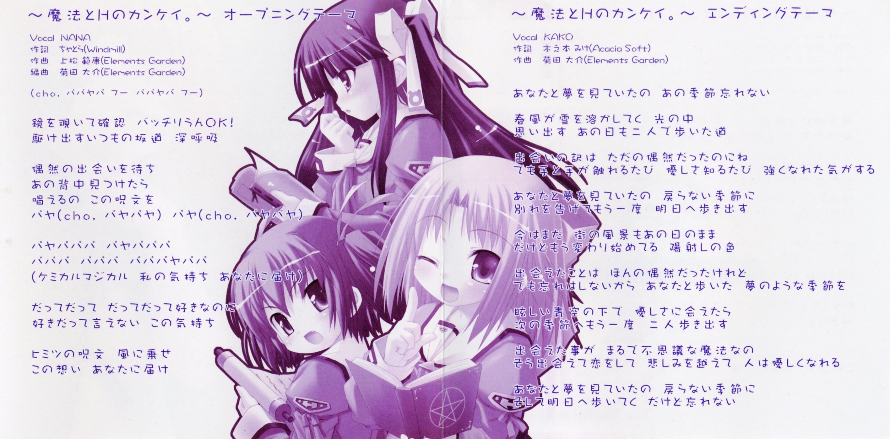 "Mahou to Koi no Kankei." / "The Connection Between Magic and Love" (opening theme)