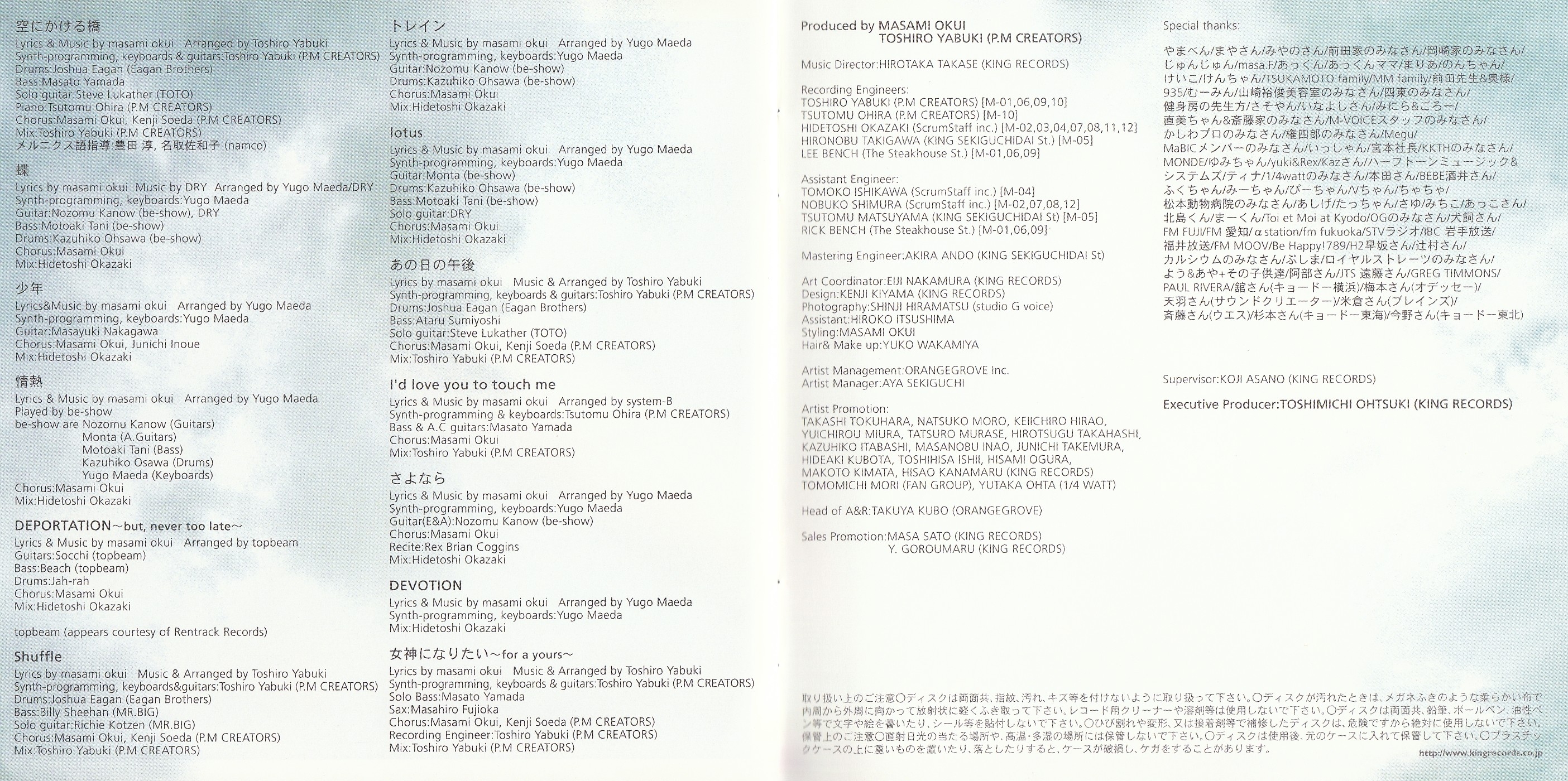 Sales Promotion: Masa Sato (KING RECORDS), Y.Goroumaru (KING RECORDS)
