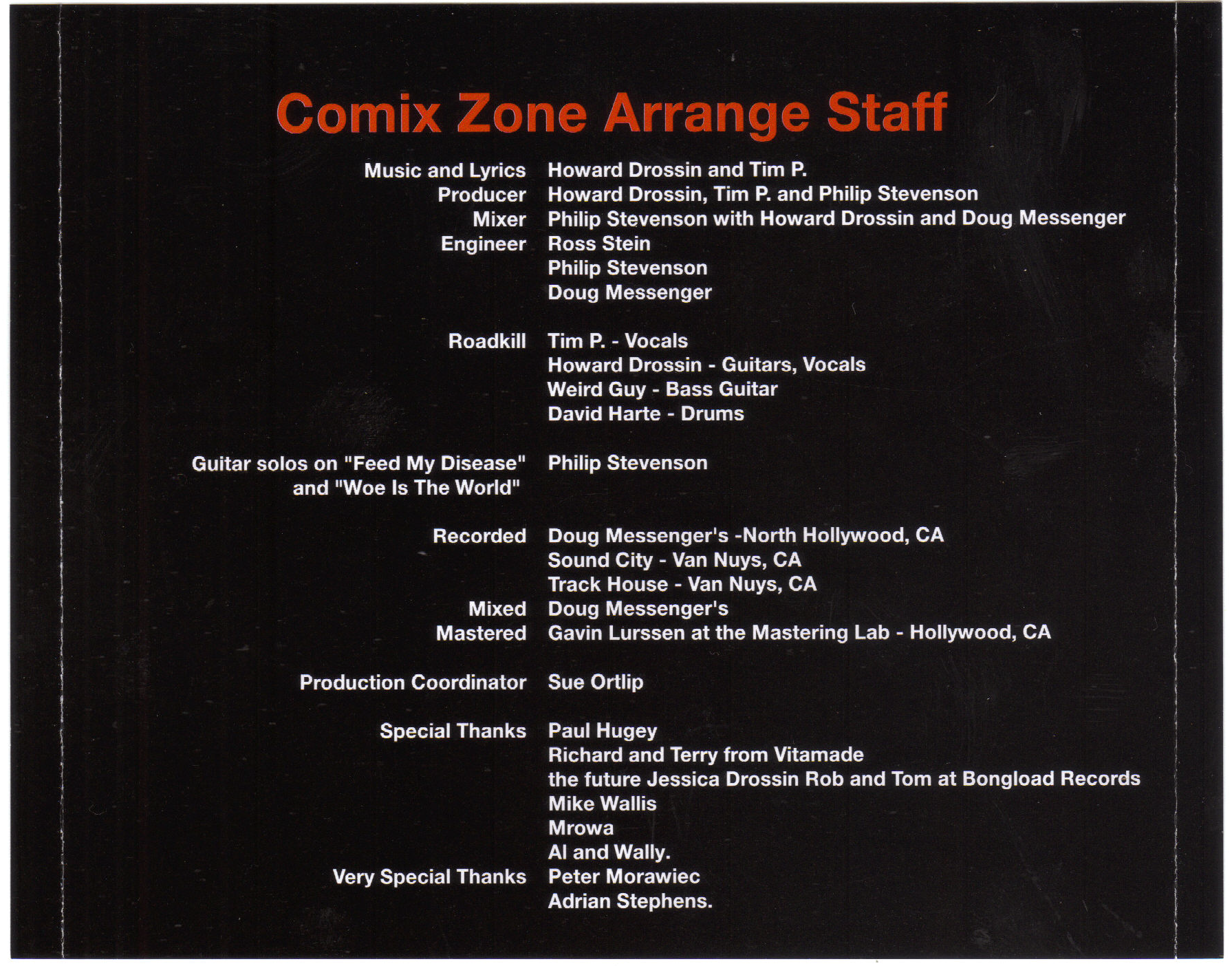 Special Thanks: Paul Hugey, Richard and Terry from Vitamade, the future Jessica Drossin Rob and Tom at Bongload Records, Mike Wallis, Mrowa, Al and Wally.