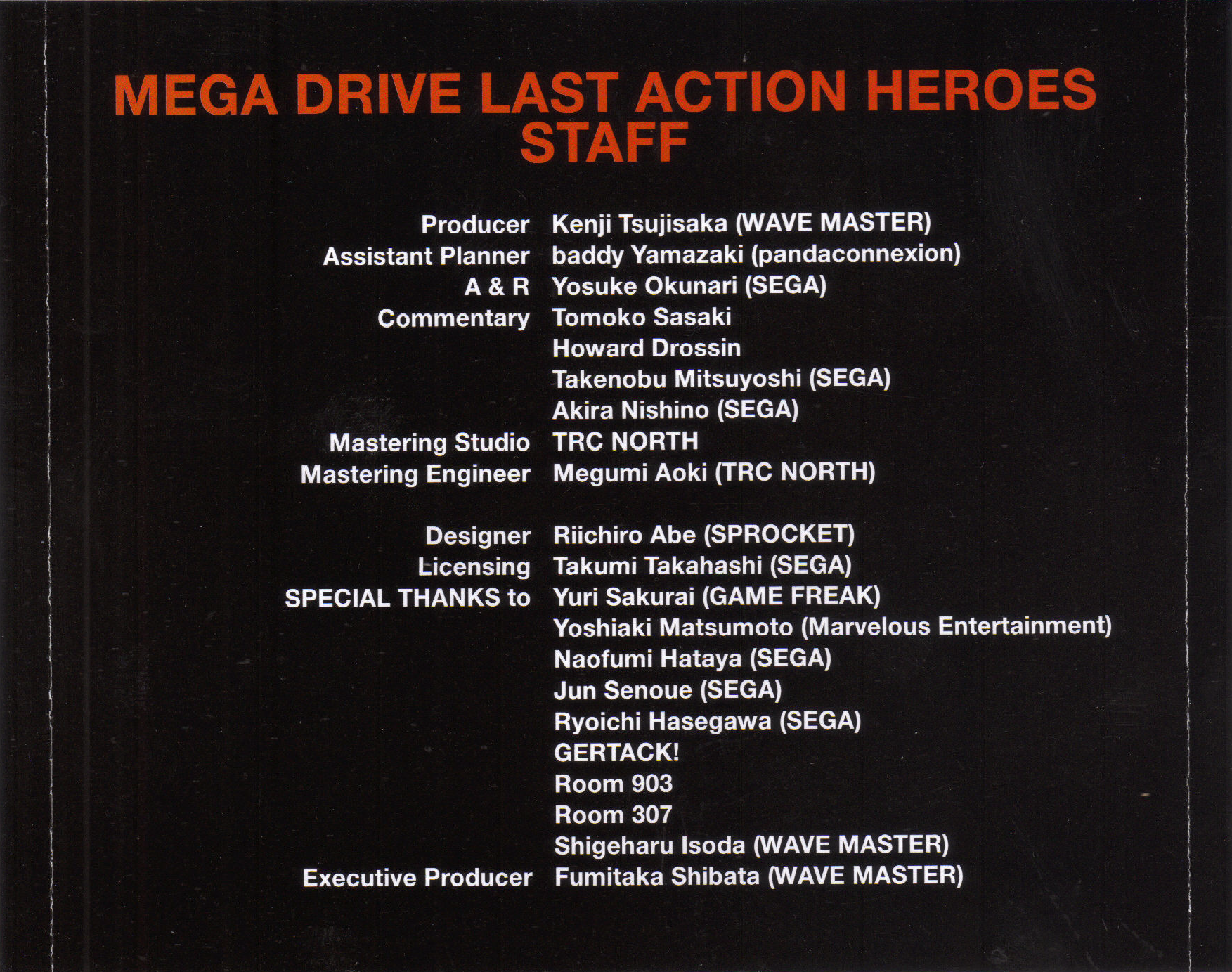 A & R: Yosuke Okunari (SEGA)