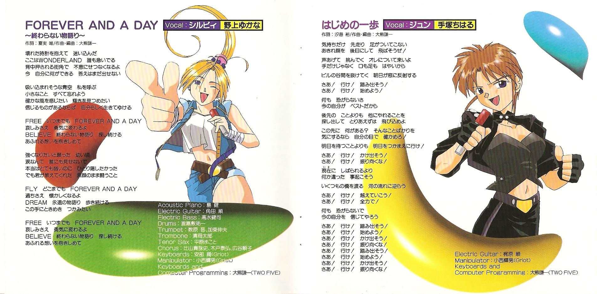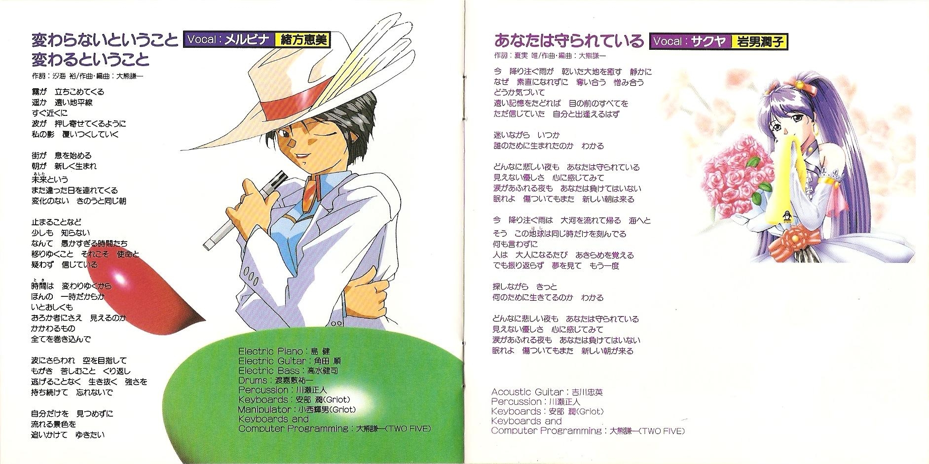 Thanks to: 上野秀規 (Imagineer Co., Ltd.), Takaaki Ageishi (Imagineer Co., Ltd.), 成田伸子 (TENKY Co. Ltd.), 手島大 (TENKY Co. Ltd.), 渋生田裕美 (SOUND INN Mixer's Crew), 楠本武 (Griot)