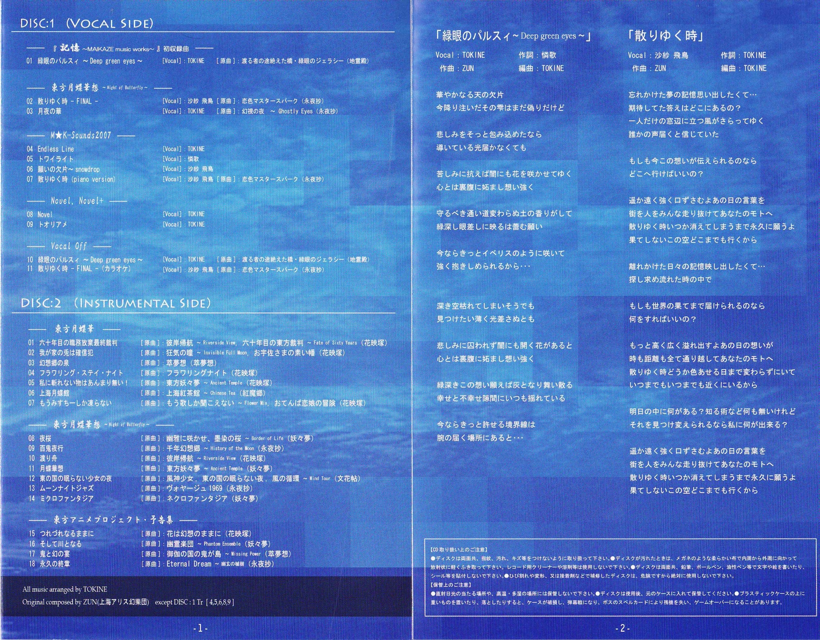 Composers: ZUN, U2 (2-03), TOKINE (1-04, 1-05, 1-06, 1-08, 1-09, 1-12)