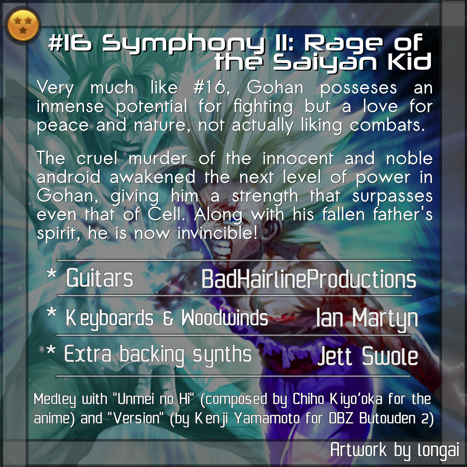 Medley with "Unmei no Hi" (composed by Chiho Kiyo'oka for the anime) and "Version" (by Kenji Yamamoto for DBZ Butouden 2)
