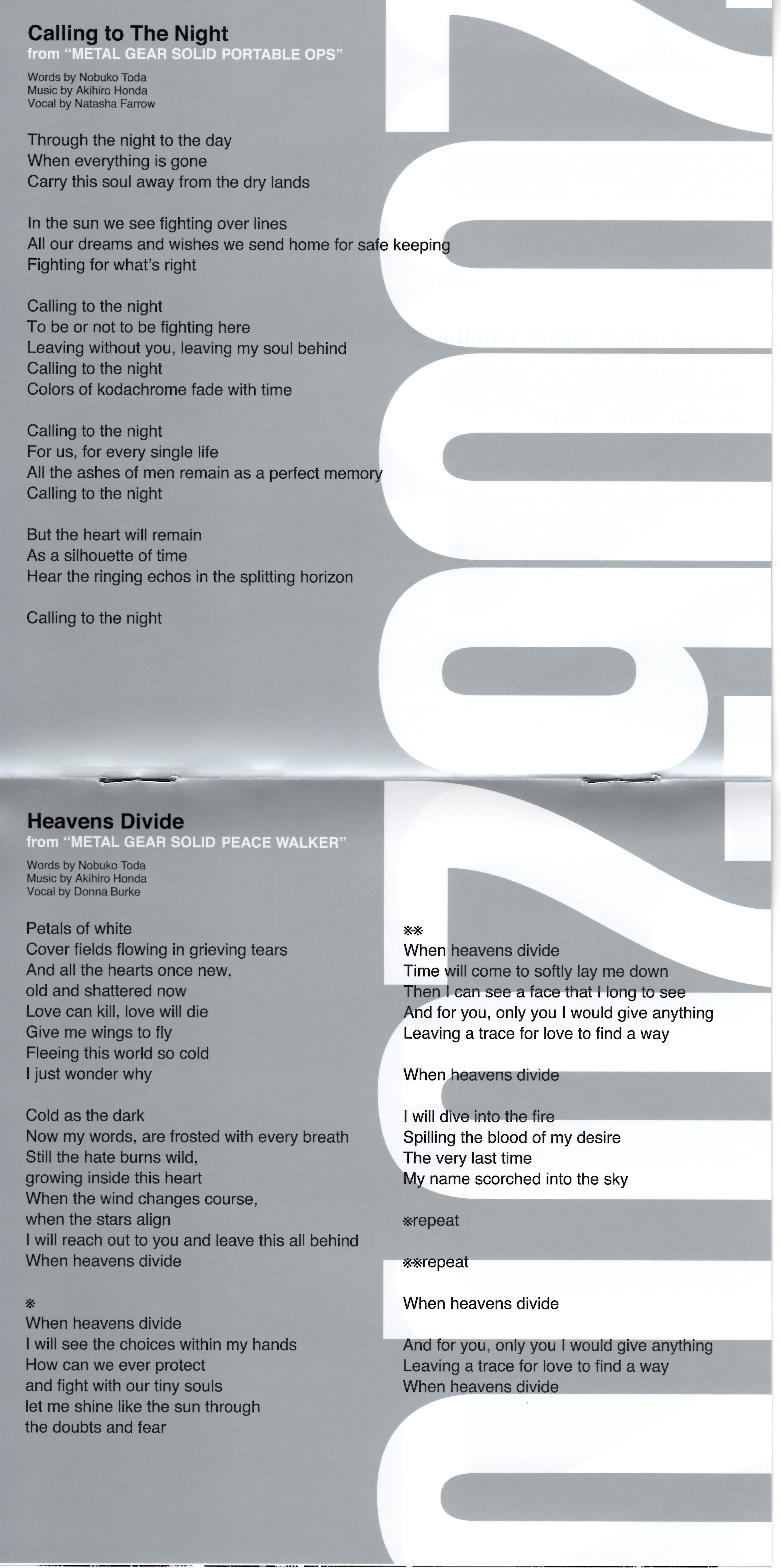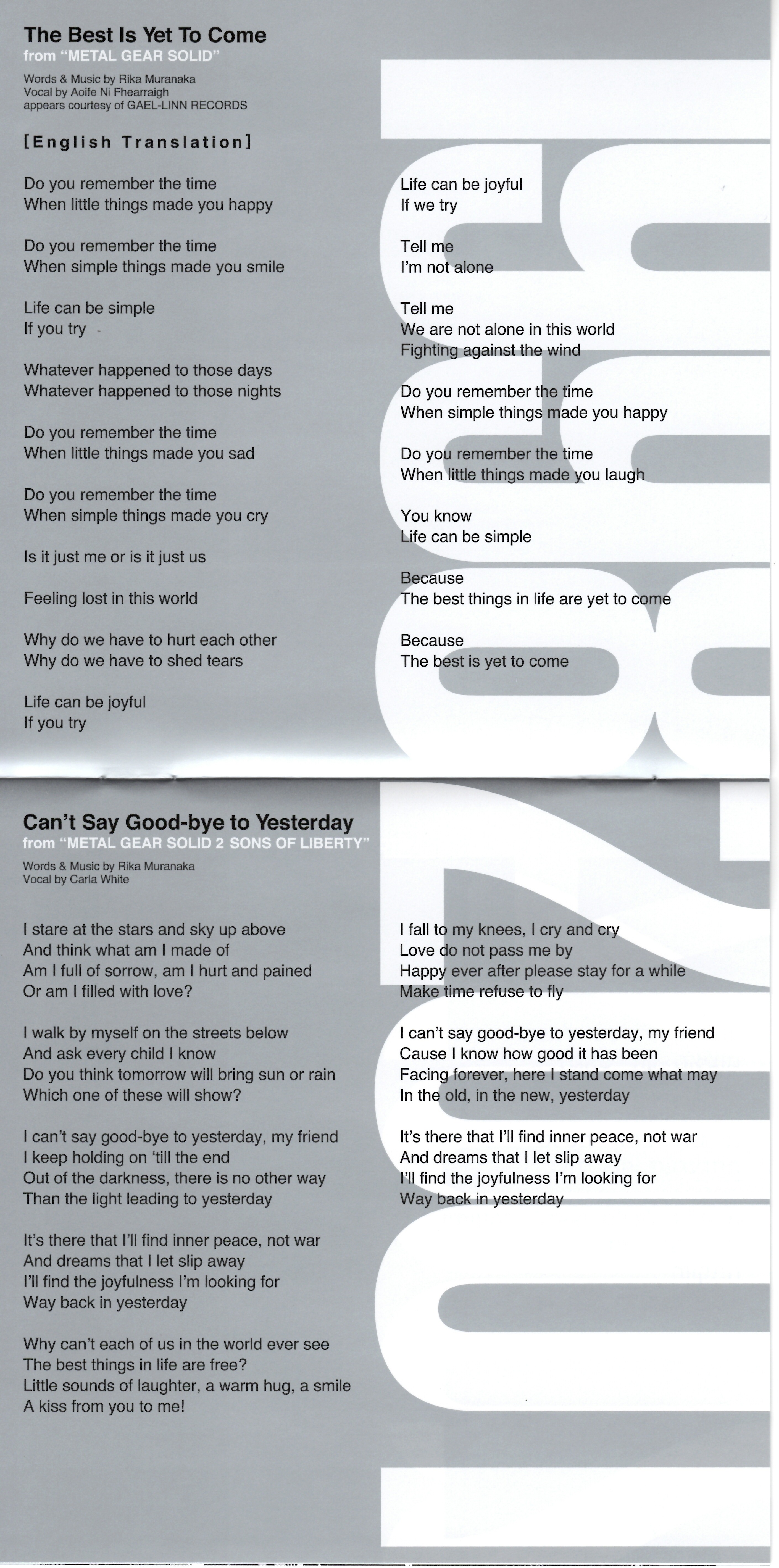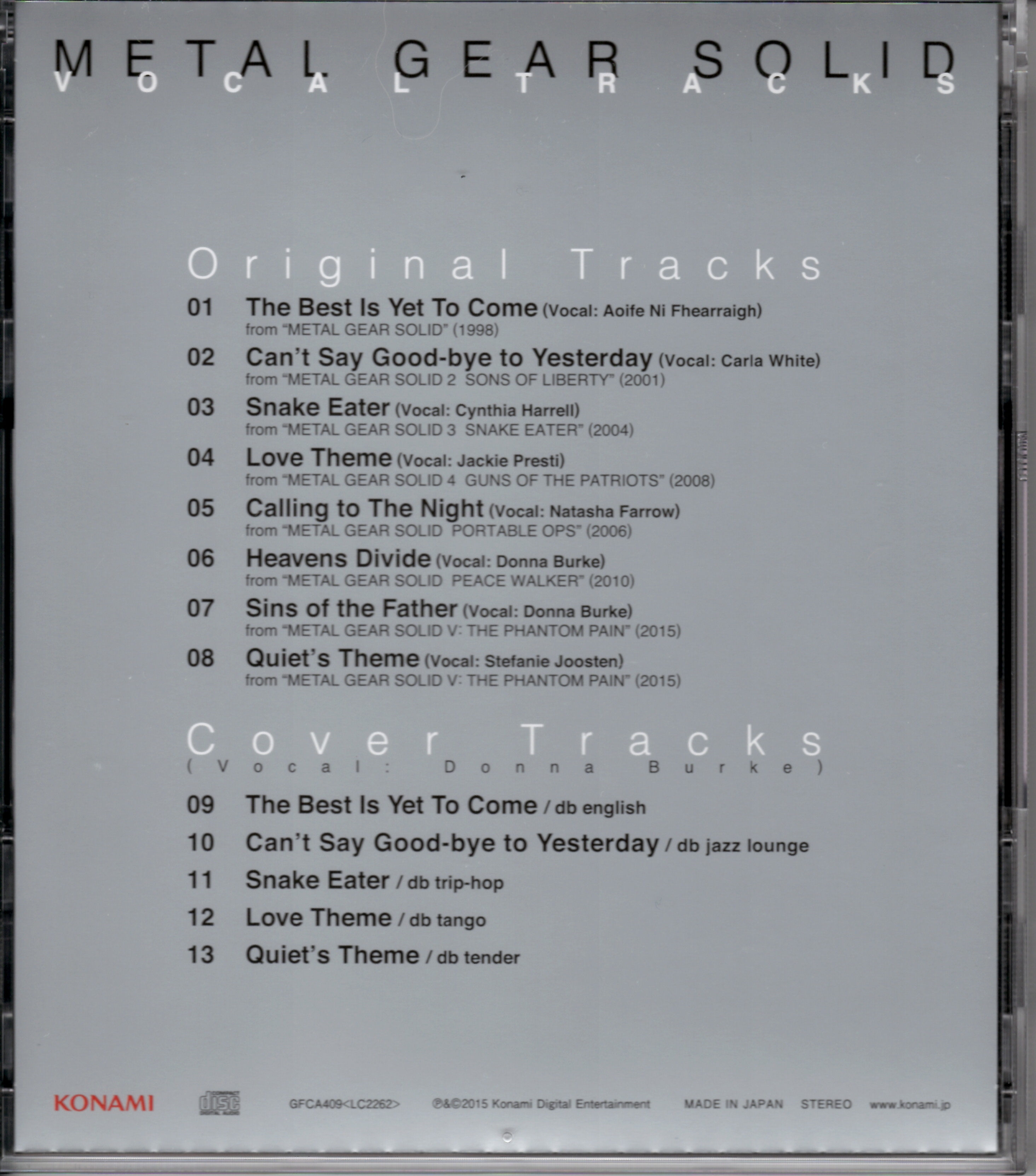 Special Thanks: Yui Ikegawa, Naoko Smith, Yuri Hira, KRH Studios, Miguel De Diego Blanco, Rika Muranaka, Joe Everittand and All METAL GEAR SOLID Fans!!