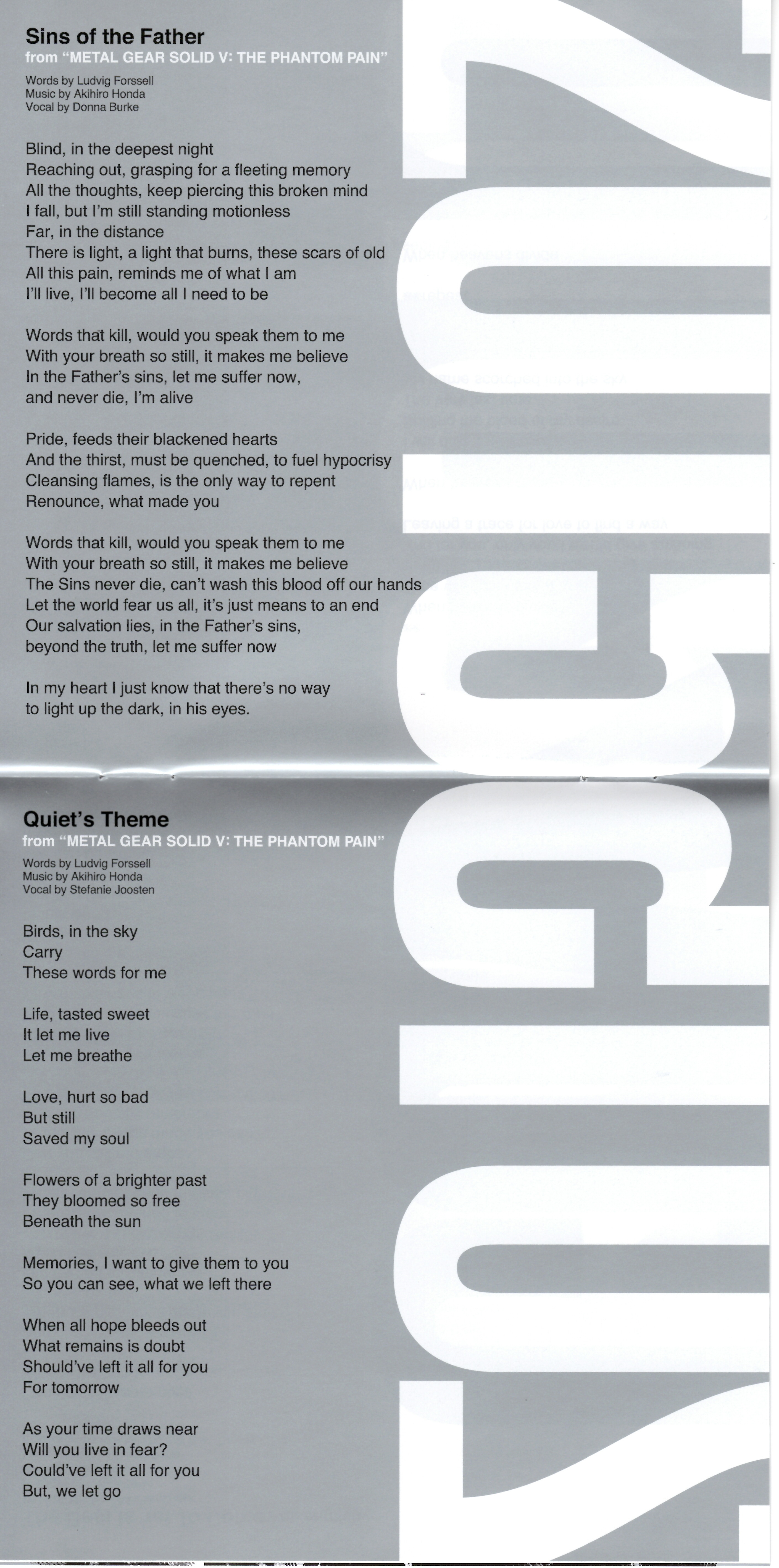 07. Sins of the Father, 08. Quiet’s Theme: Music Department Credits