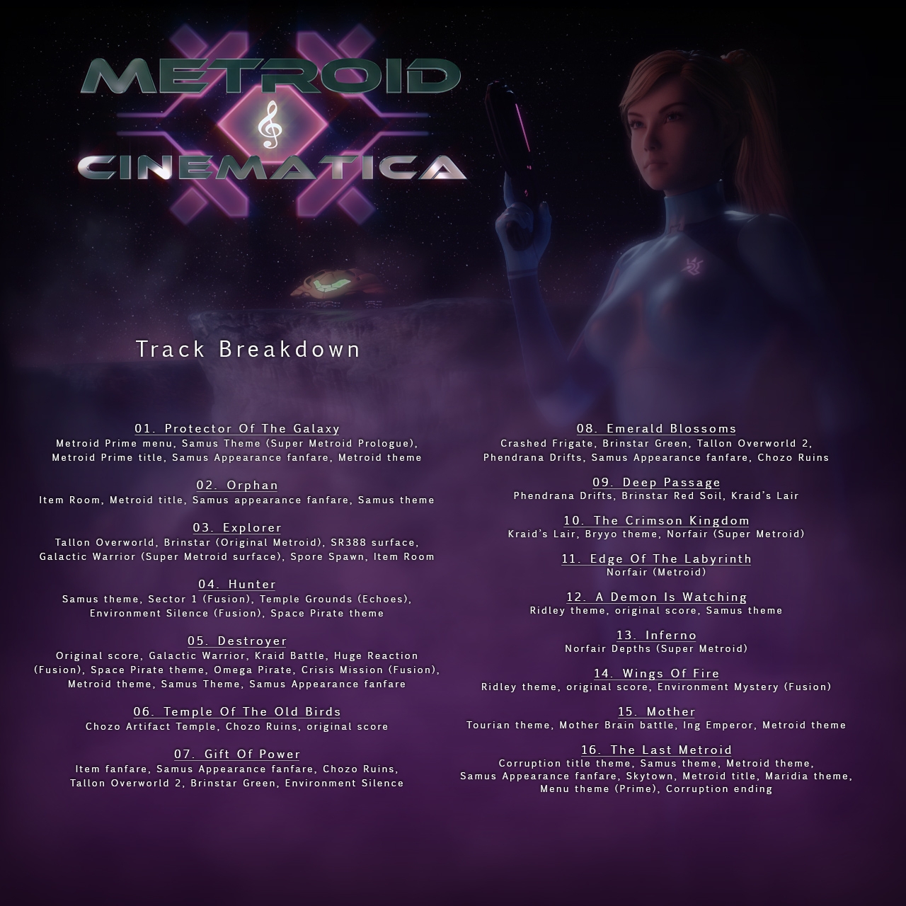 "The definitive epic film-style Metroid soundtrack encompassing the entirety of the series from the original to the Primes.