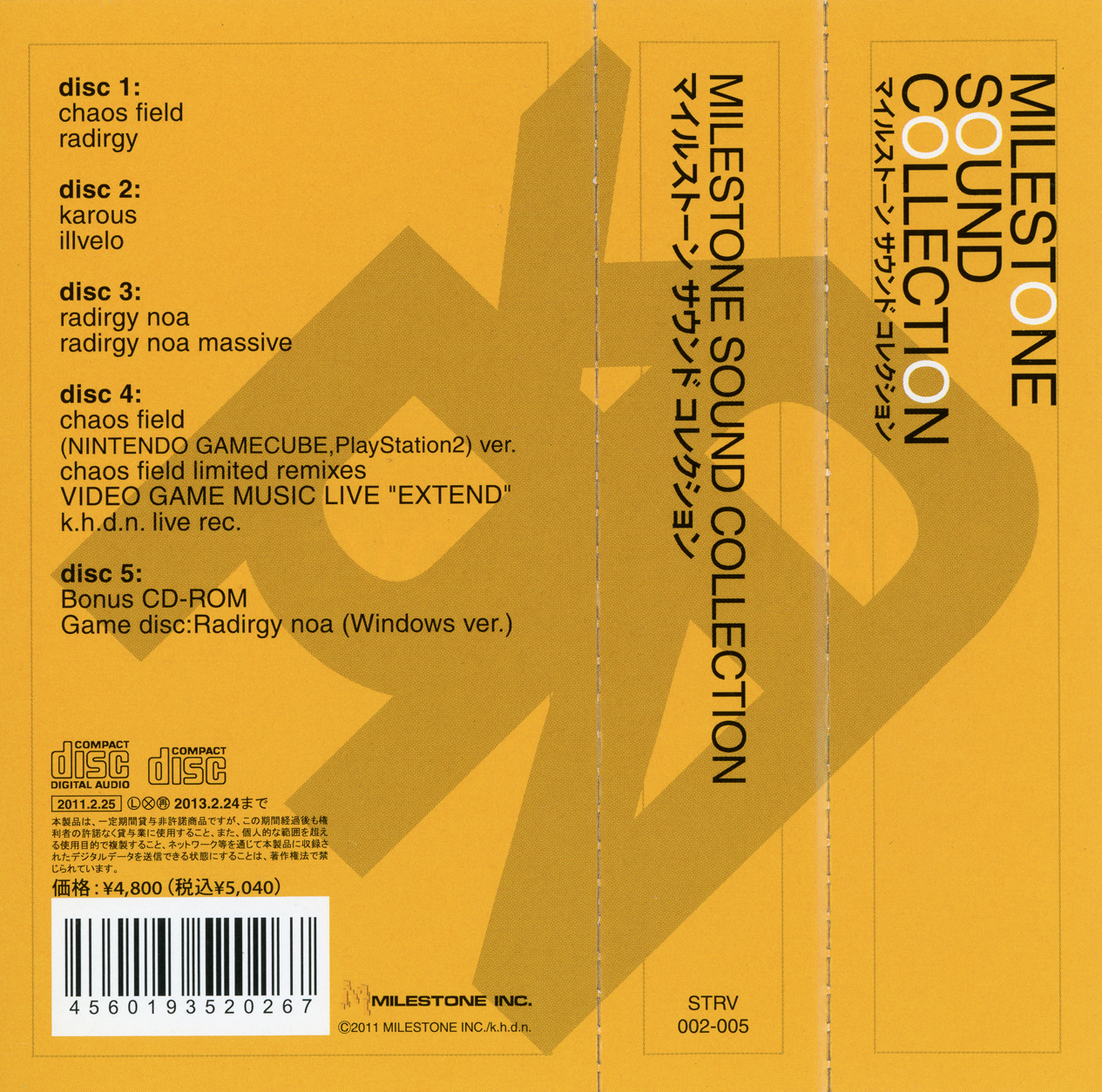 The fifth disc is a CD-ROM of Radirgy Noa Windows Version.