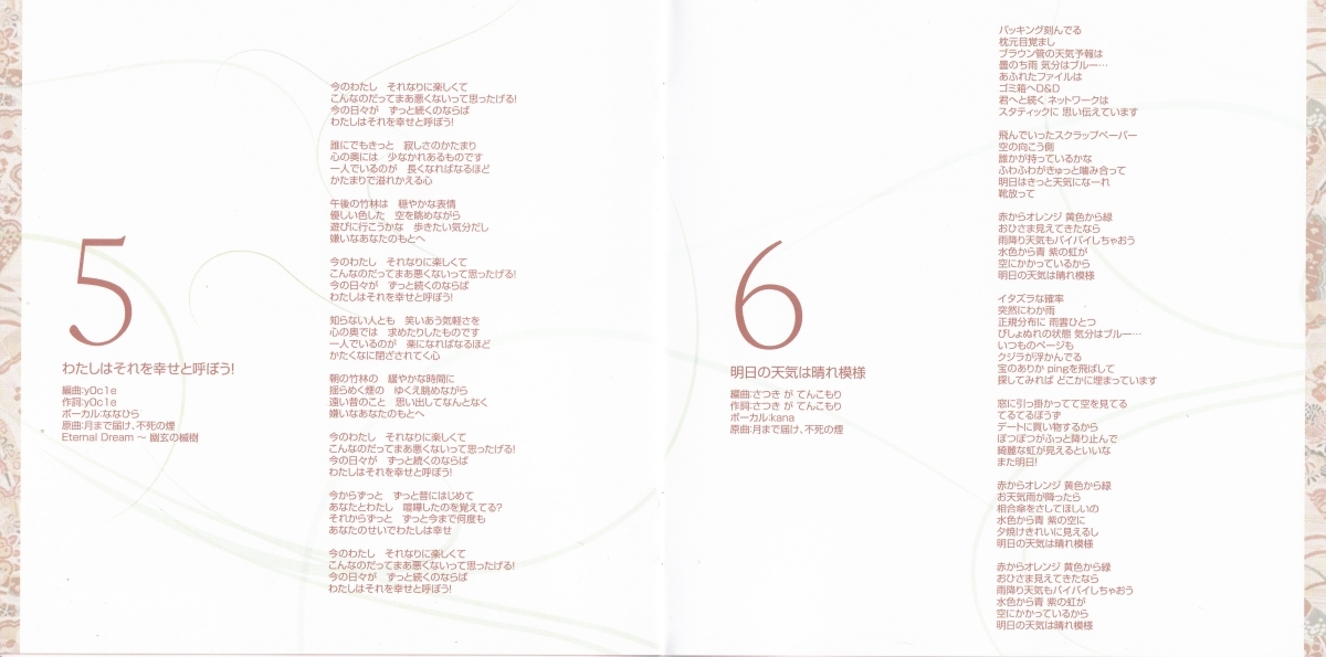 5. | わたしはそれを幸せと呼ぼう! | 4:18 | 8.40 MB | 31.83 MB | get_app | playlist_add |
