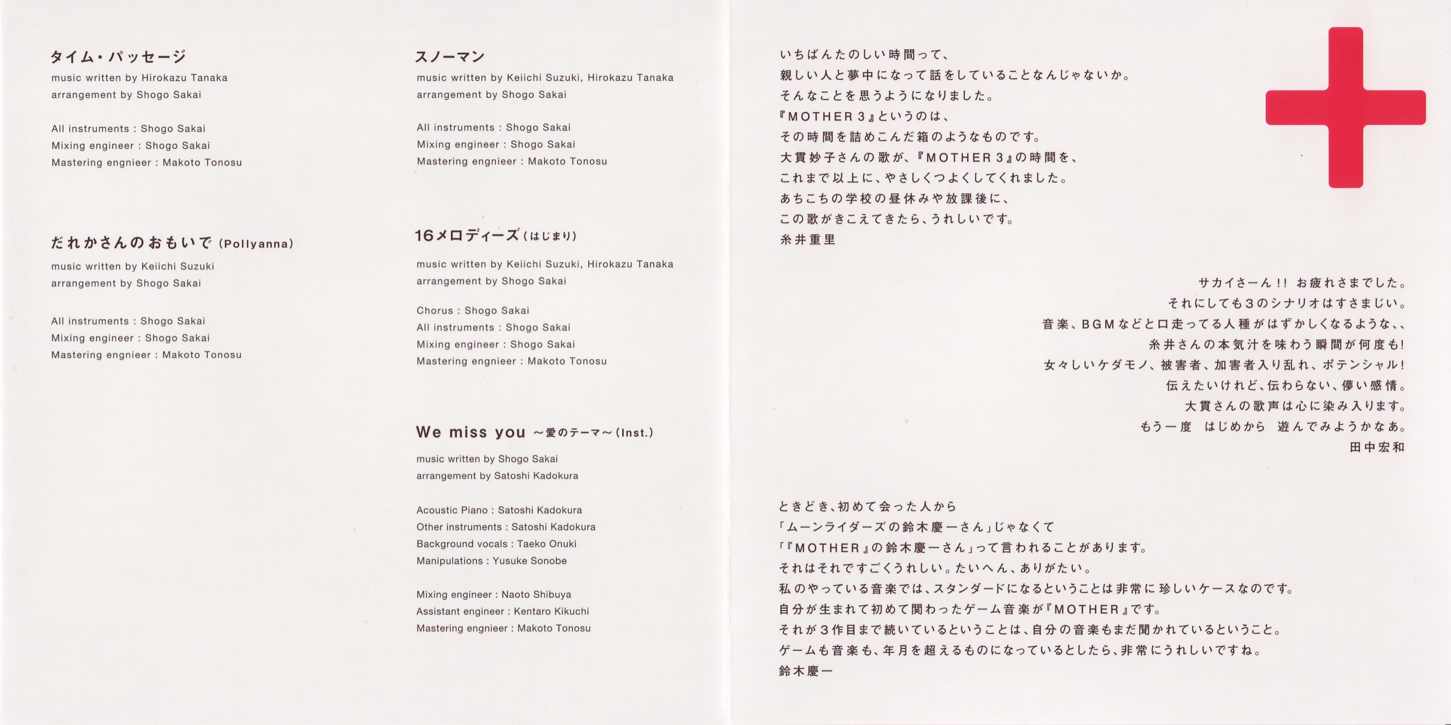 music written by Keiichi Suzuki, Hirokazu Tanaka (Eight Melodies from EarthBound Beginnings, the different track also called Eight Melodies from Earthbound), Shogo Sakai (Love Theme from Mother 3)