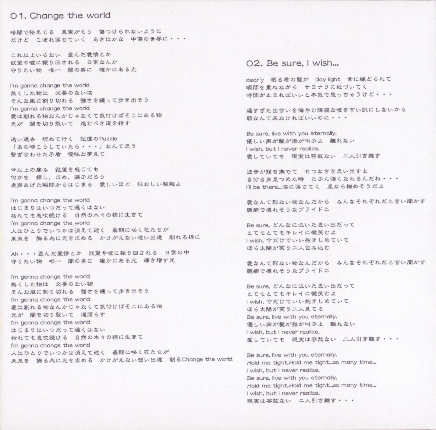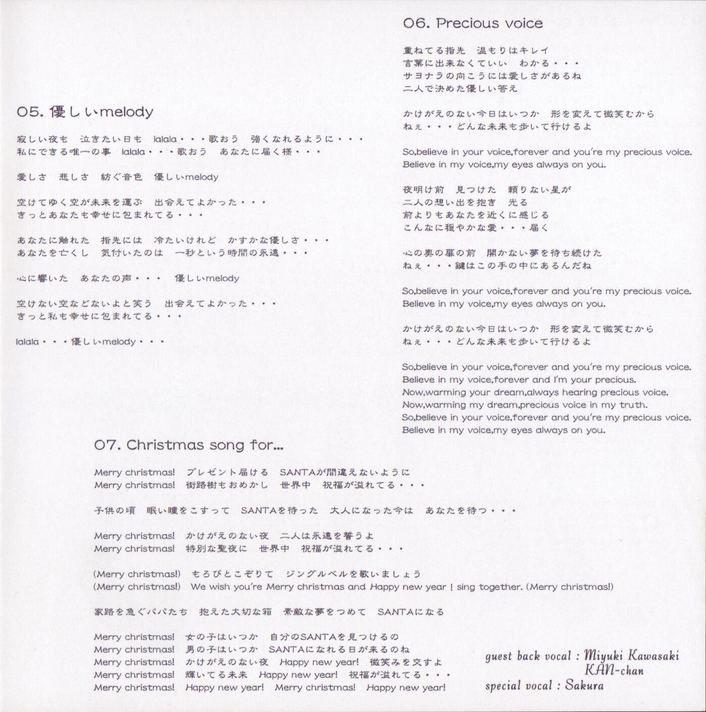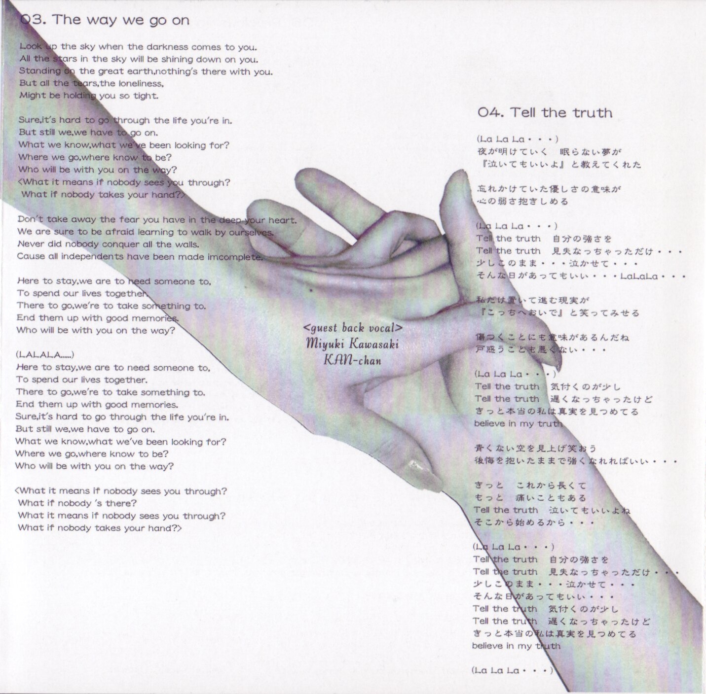 All lyrics by REIKA, except track 3 by REIKA + Lisa.